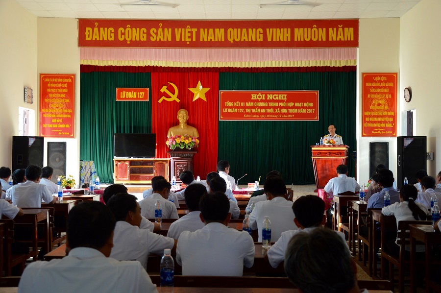 Chiều 18-12, tại huyện đảo Phú Quốc, tỉnh Kiên Giang, Lữ đoàn 127, Vùng 5 Hải quân đã tổ chức Hội nghị tổng kết 1 năm phối hợp hoạt động giữa Lữ đoàn với thị trấn An Thới và xã Hòn Thơm.