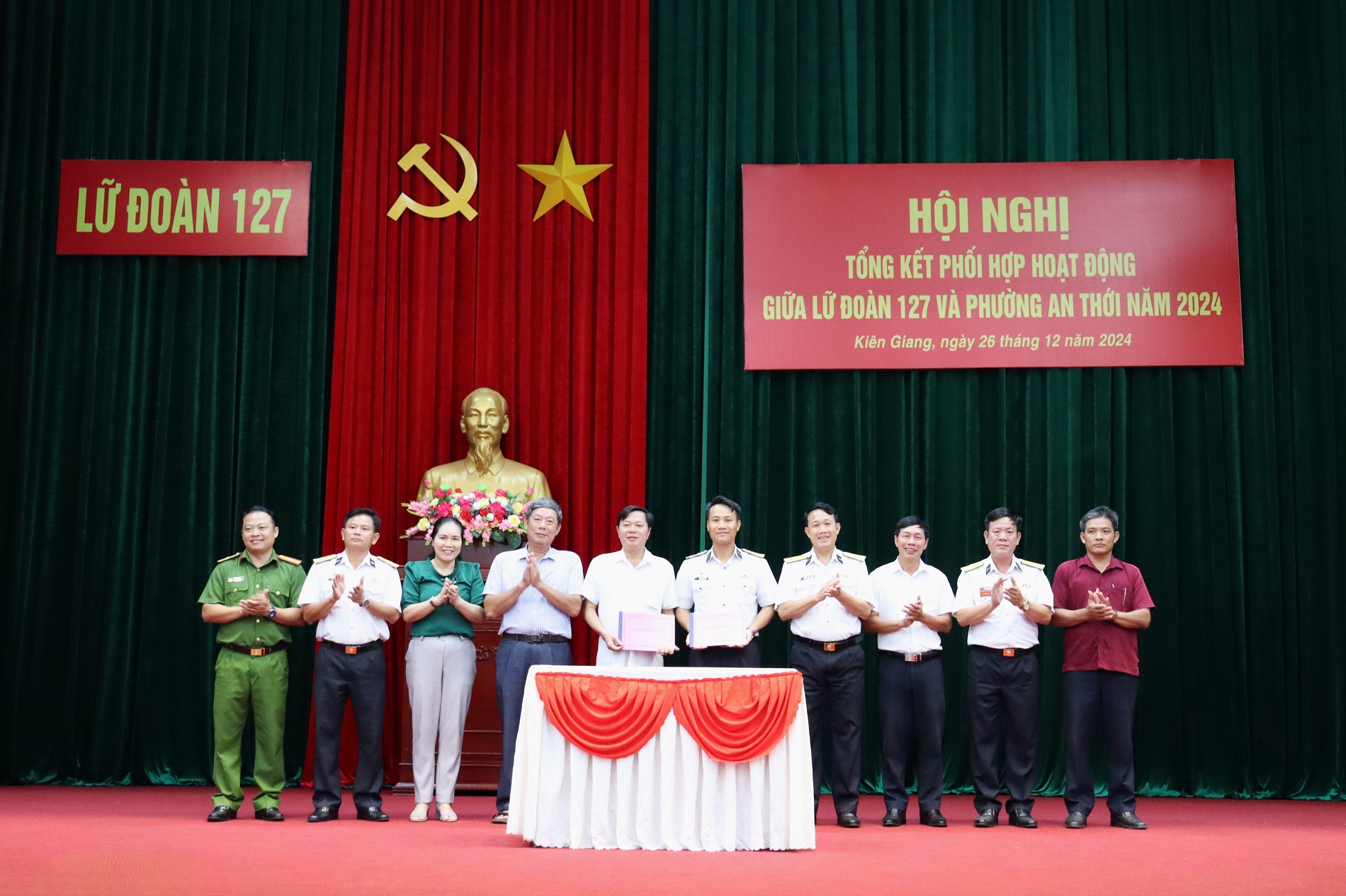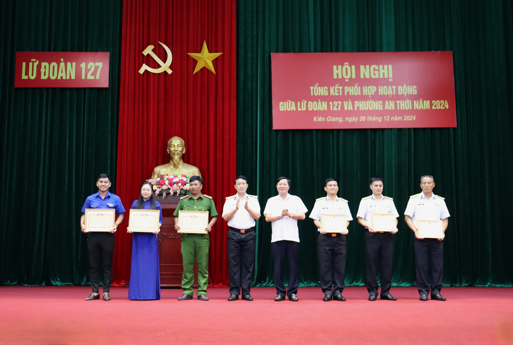 Tại hội nghị, Lữ đoàn 127 và phường An Thới đã tặng Giấy khen cho 2 tập thể, 4 cá nhân có thành tích tốt trong năm 2024; đồng thời thống nhất các nội dung phối hợp và ký kết chương trình hoạt động năm 2025.