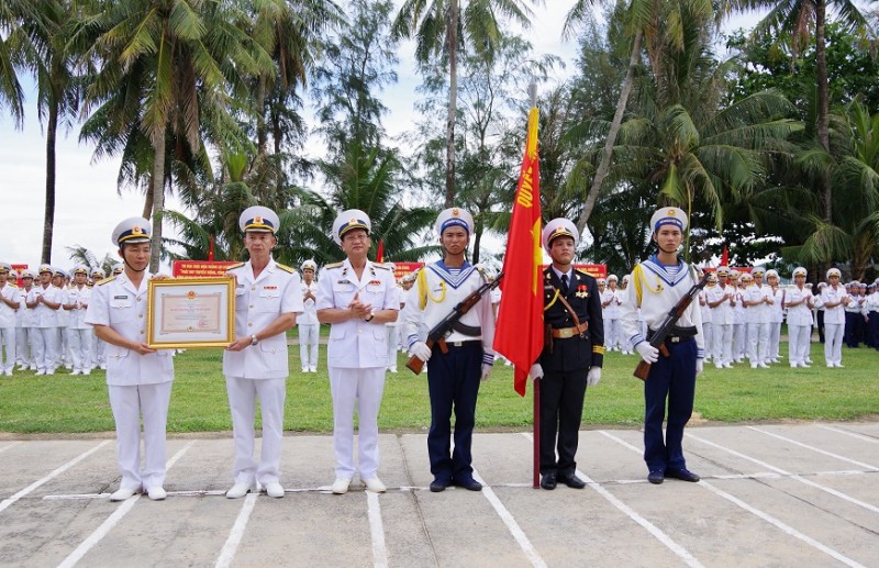Thừa ủy quyền của Chủ tịch nước, Chuẩn Đô đốc Ngô Sỹ Quyết gắn Huân chương Bảo vệ Tổ quốc hạng Nhì lên Quân kỳ quyết thắng của Lữ đoàn 127