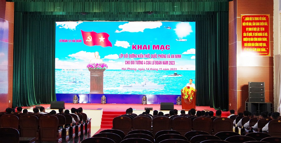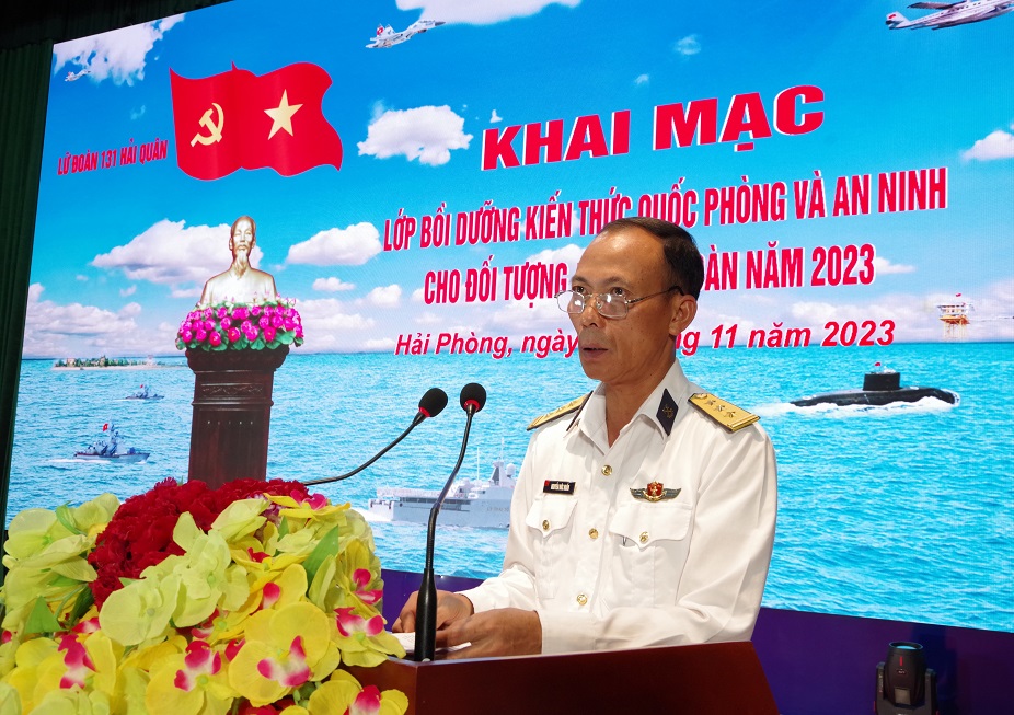 Sáng 14/11, tại Hải Phòng, Lữ đoàn Công binh 131 Hải quân tổ chức khai mạc lớp bồi dưỡng kiến thức quốc phòng và an ninh cho đối tượng 4 năm 2023. Thượng tá Nguyễn Đức Huấn, Phó Lữ đoàn trưởng phát biểu khai mạc.