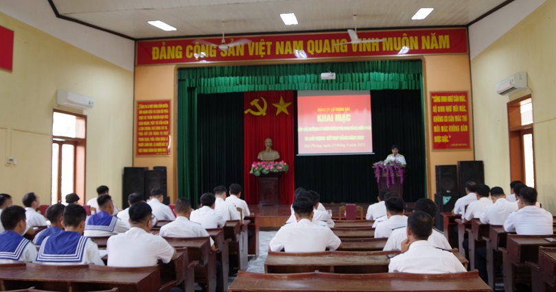Sáng 12/9, tại Hải Phòng, Đảng ủy Lữ đoàn Công binh 131 Hải quân tổ chức khai mạc lớp bồi dưỡng lý luận chính trị dành cho đảng viên mới và đối tượng kết nạp đảng năm 2022. Thượng tá Vũ Quang Khoát, Phó Chính ủy Lữ đoàn chủ trì.