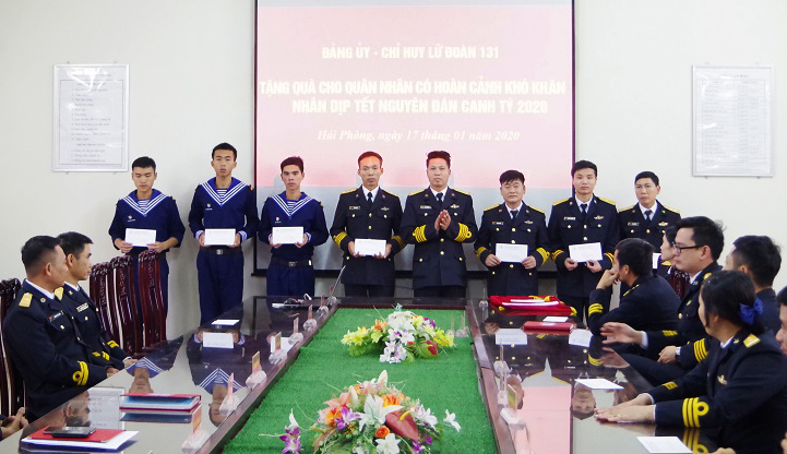Sáng 17-1, tại Hải Phòng, Lữ đoàn Công binh 131 tổ chức trao tặng quà cho quân nhân có hoàn cảnh khó khăn trong đơn vị nhân dịp Tết Nguyên đán Canh Tý 2020.
