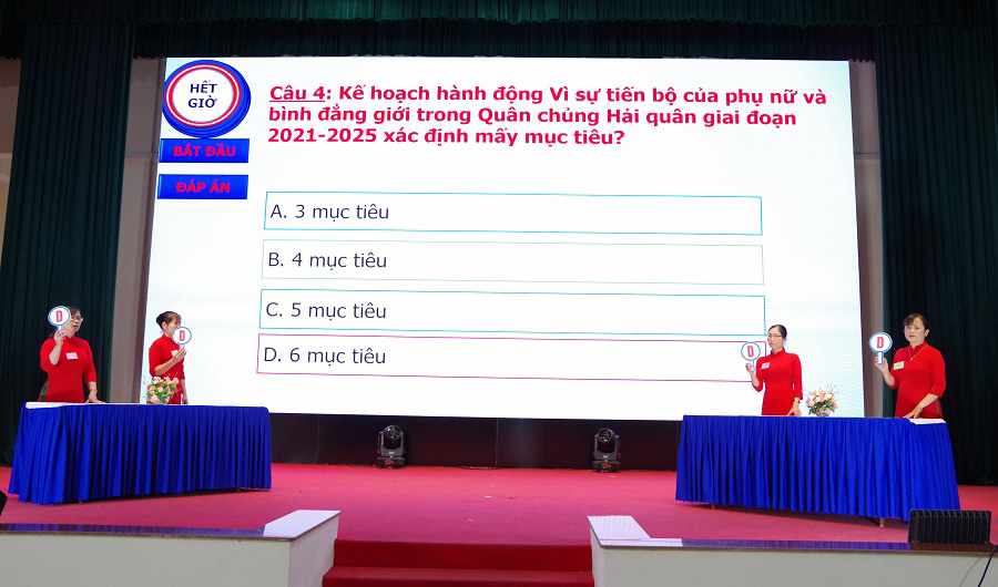 Với sự chuẩn bị chu đáo, các thí sinh đã hoàn thành tốt nội dung thi. Các đội đã thể hiện sự hiểu biết sâu sắc về nghị quyết đại hội phụ nữ các cấp; quy chế công tác phụ nữ trong Quân đội; nội dung, nhiệm vụ trọng tâm và phong trào thi đua của hội phụ nữ các cấp; kiến thức về công tác vì sự tiến bộ của phụ nữ và bình đẳng giới, dân số, gia đình và trẻ em.