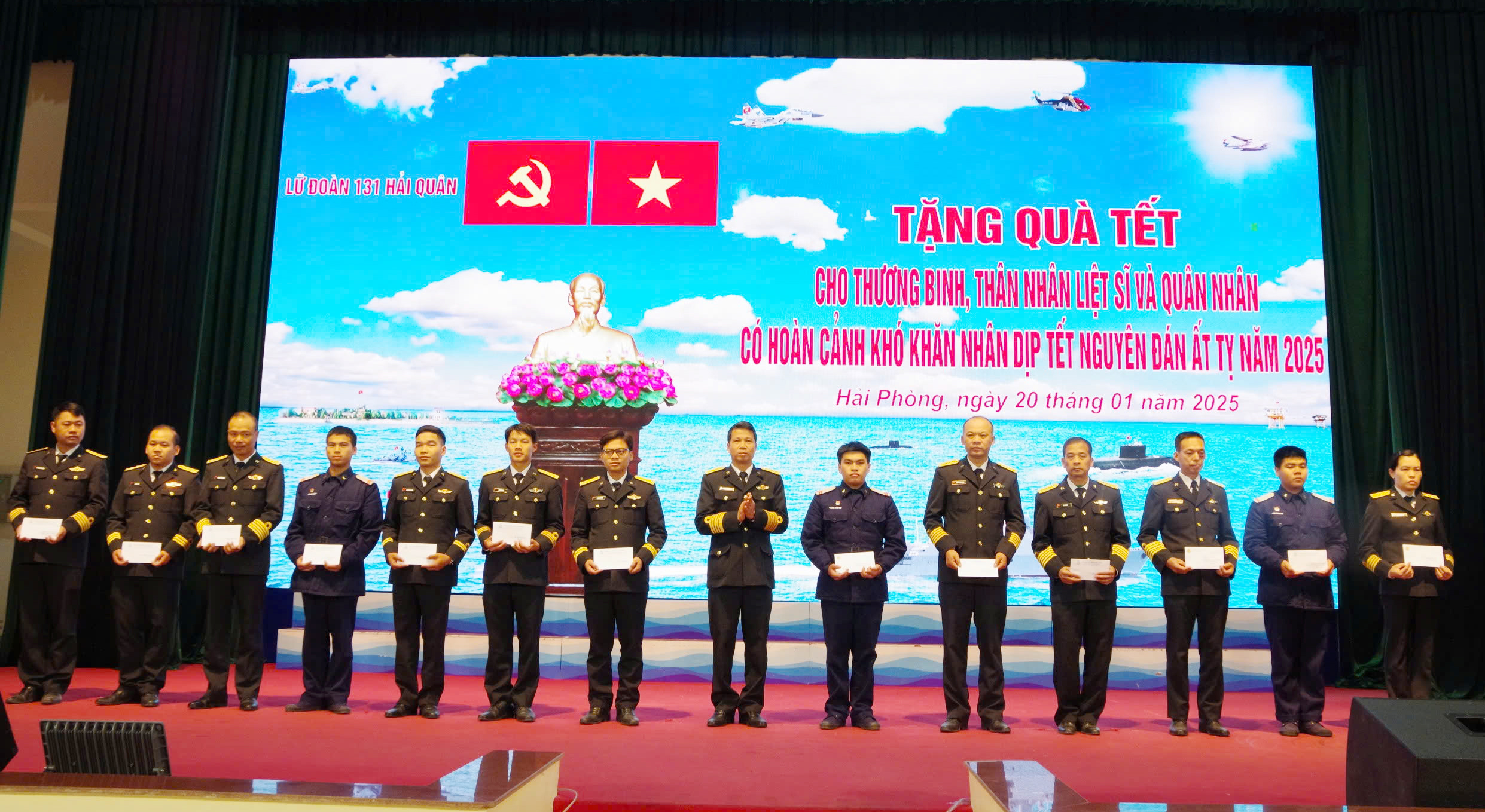 Chiều 20/1, tại Hải Phòng, Lữ đoàn Công binh 131 Hải quân tổ chức trao quà tết tặng các đối tượng chính sách, quân nhân có hoàn cảnh khó khăn nhân dịp Tết Nguyên đán Ất Tỵ 2025.