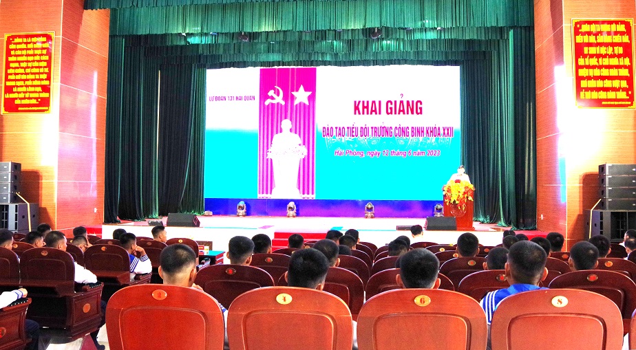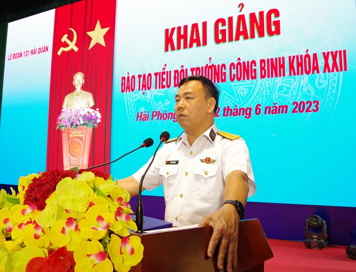 Sáng 12/6, tại Hải Phòng, Lữ đoàn Công binh 131 Hải quân tổ chức lễ khai giảng Khóa 22 đào tạo Tiểu đội trưởng công binh năm 2023. Đại tá Đào Văn Bạn, Lữ đoàn trưởng dự và phát biểu khai giảng.