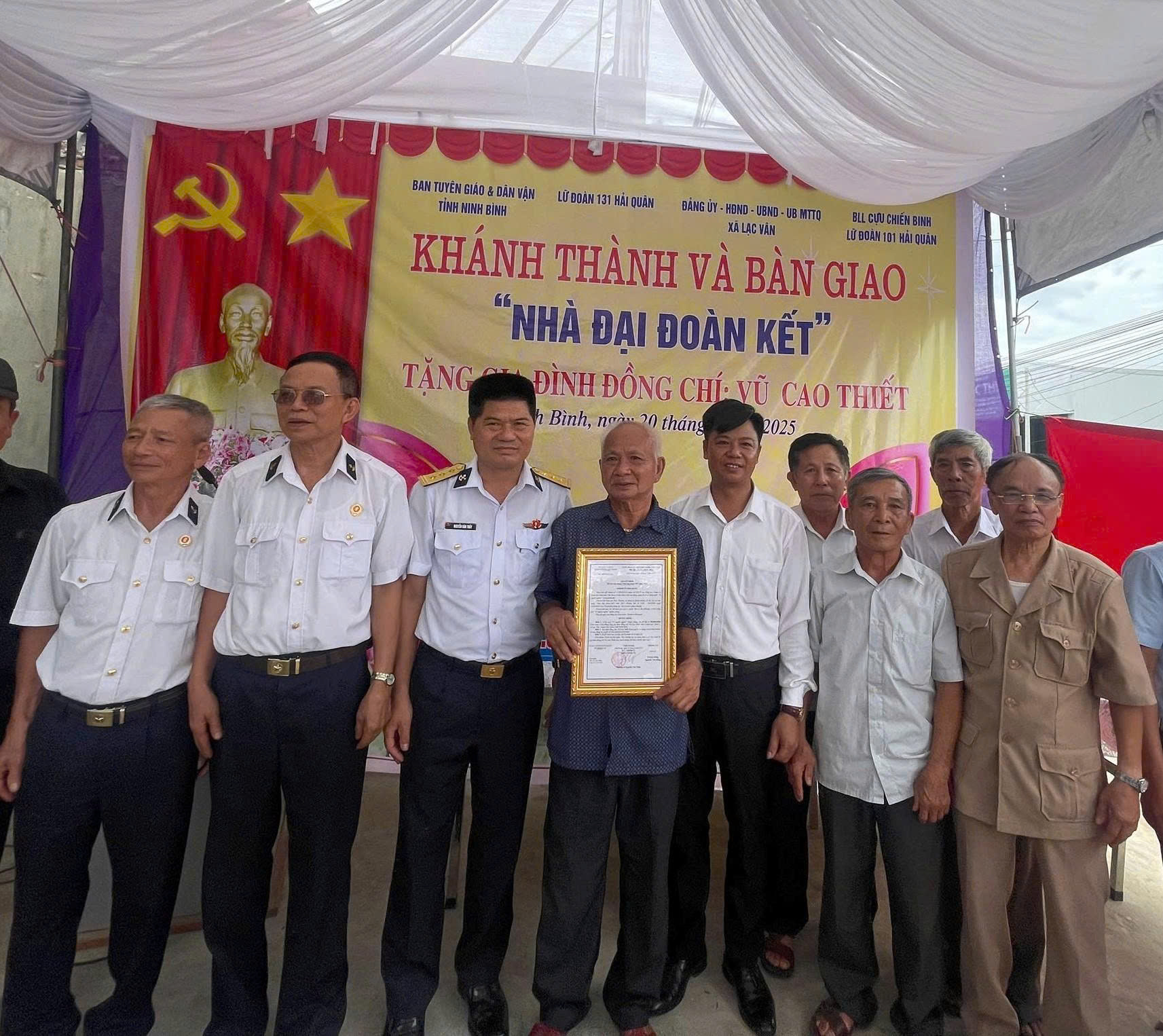 Chiều 20/6 tại Ninh Bình, Lữ đoàn Công binh 131 phối hợp Ban Tuyên giáo và Dân vận Tỉnh ủy Ninh Bình, chính quyền xã Lạc Vân, huyện Nho Quan, tổ chức khánh thành bàn giao nhà đại đoàn kết tặng gia đình ông Vũ Cao Thiết, nguyên là chiến sĩ thuộc Lữ đoàn 101 Hải quân.