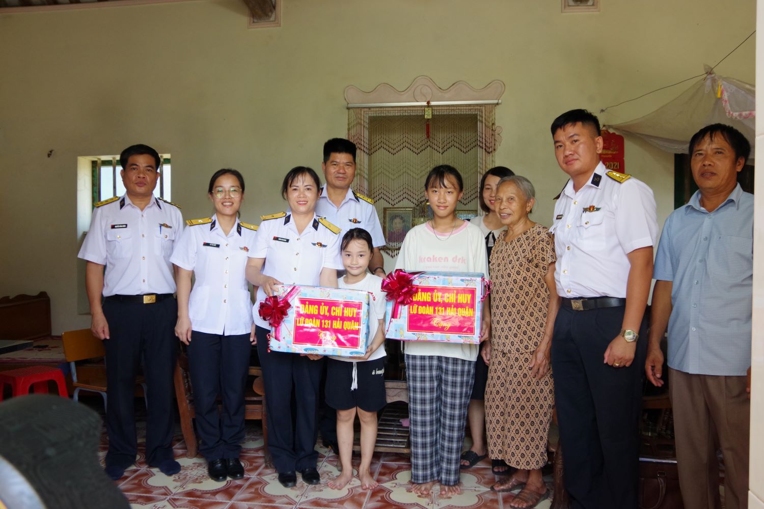 Đoàn đã đến thăm, động viên cháu Nguyễn Dung Han và Nguyễn Ánh Ly (cùng sinh năm 2017, ở xóm 8B, xã Cồn Thoi, huyện Kim Sơn). Hai cháu là con ngư dân được Lữ đoàn 131 nhận đỡ đầu trong chương trình "Hải quân Việt Nam làm điểm tựa cho ngư dân vươn khơi, bám biển".