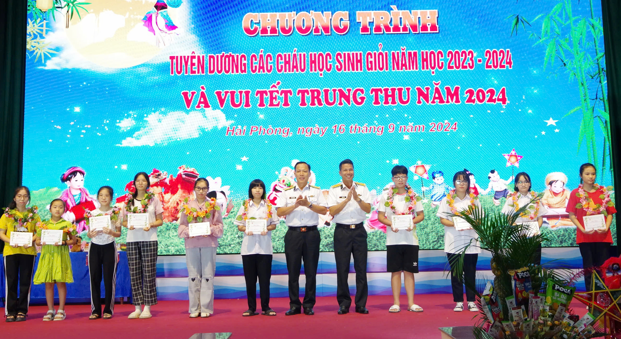 Tối 16/9, tại Hải Phòng, Lữ đoàn Công binh 131 Hải quân tổ chức tuyên dương các cháu học sinh giỏi năm học 2023-2024 là con quân nhân đơn vị nhân dịp tết Trung thu năm 2024.