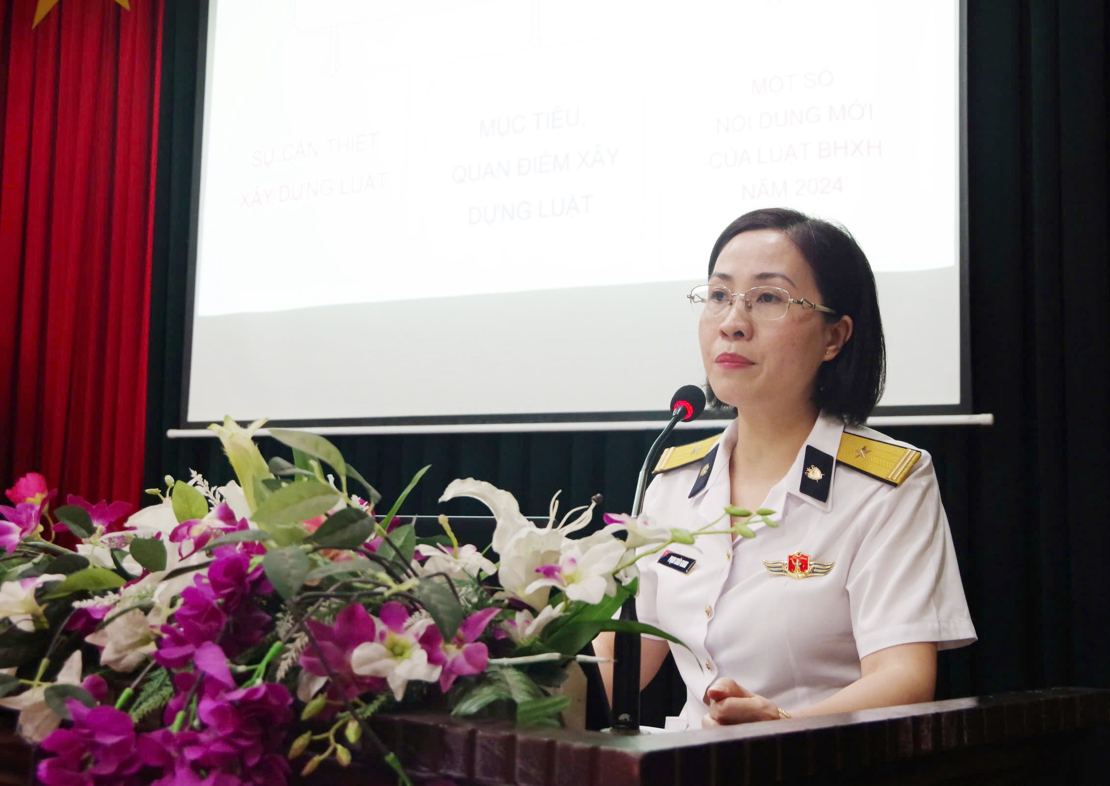 Cán bộ Viện Kiểm sát quân sự truyền đạt nội dung tại hội nghị