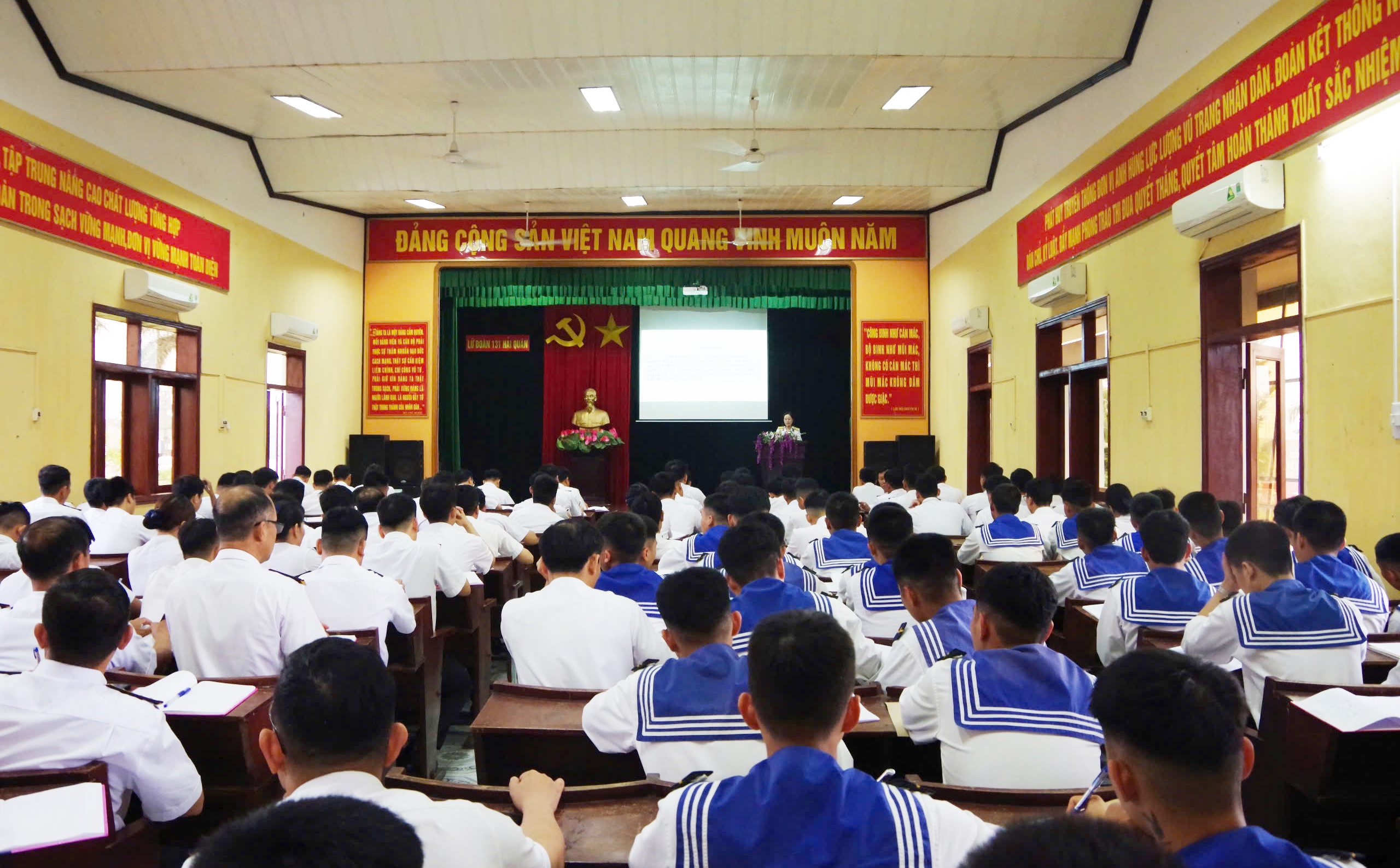 Sáng 22/4, tại Hải Phòng, Lữ đoàn Công binh 131 Hải quân phối hợp với Tòa án Quân sự, Viện kiểm sát Quân sự khu vực 1 Quân chủng Hải quân tổ chức Hội nghị tuyên truyền, phổ biến, giáo dục pháp luật cho cán bộ, chiến sĩ trong đơn vị.