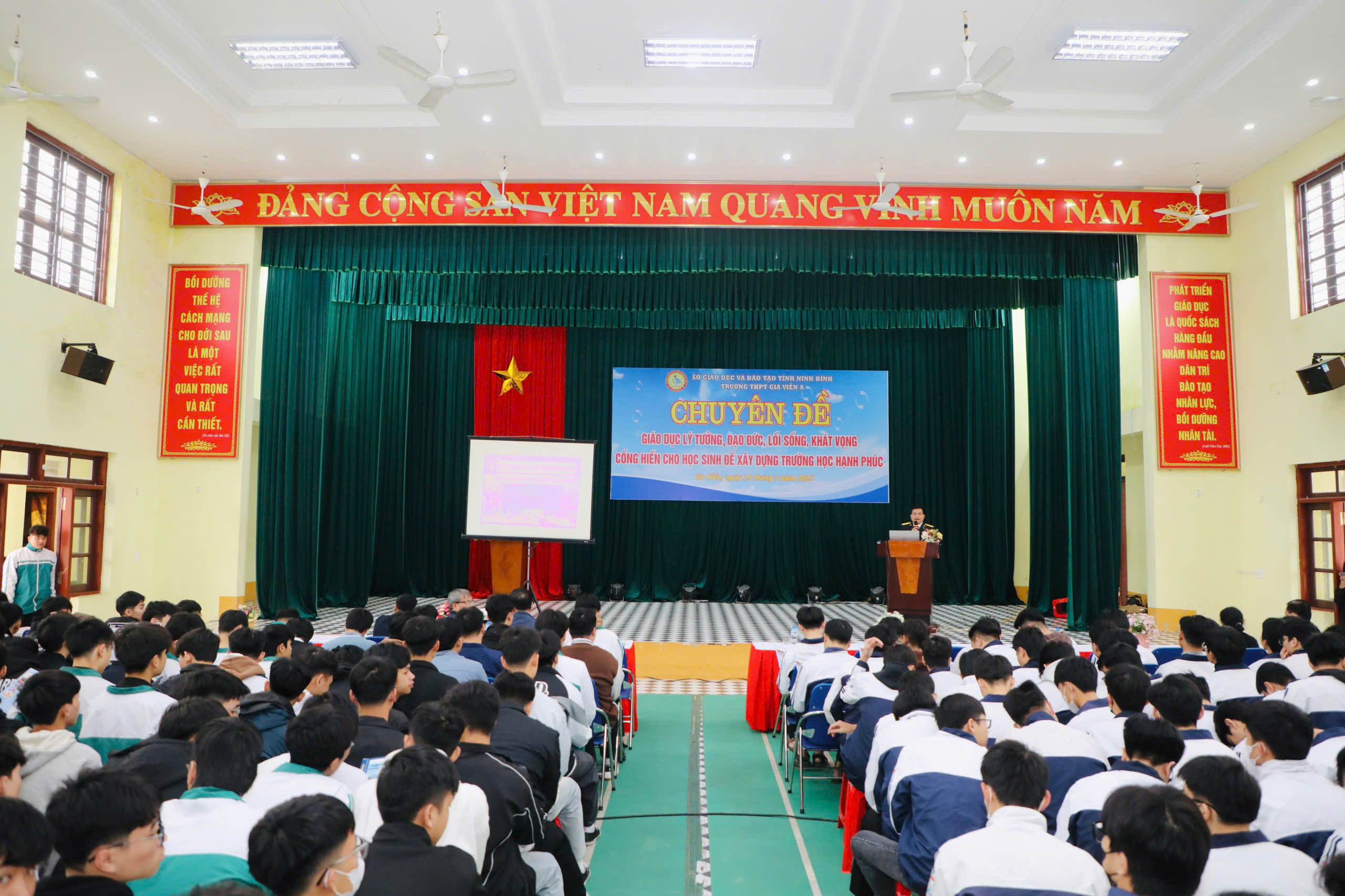 Buổi tuyên truyền nhằm giúp cán bộ, giáo viên, học sinh của Trường THPT Gia Viễn A hiểu rõ hơn về biển đảo Việt Nam và các quan điểm, chủ trương của Đảng, Nhà nước ta về bảo vệ chủ quyền biển đảo trong giai đoạn hiện nay; những điều cần biết về Học viện Hải quân, con đường để có thể trở thành sĩ quan phục vụ trong Quân chủng Hải quân; đồng thời nâng cao vai trò, trách nhiệm của thế hệ trẻ trong công cuộc xây dựng và bảo vệ Tổ quốc.