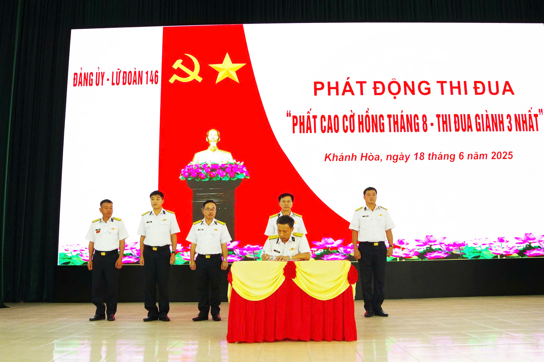 Sáng 18/6, tại TP.Cam Ranh, tỉnh Khánh Hoà, Lữ đoàn 146, Vùng 4 Hải quân tổ chức Hội nghị quân chính 6 tháng đầu năm 2025 và phát động đợt thi đua cao điểm với chủ đề “Phất cao cờ hồng tháng Tám - Thi đua giành 3 nhất”.