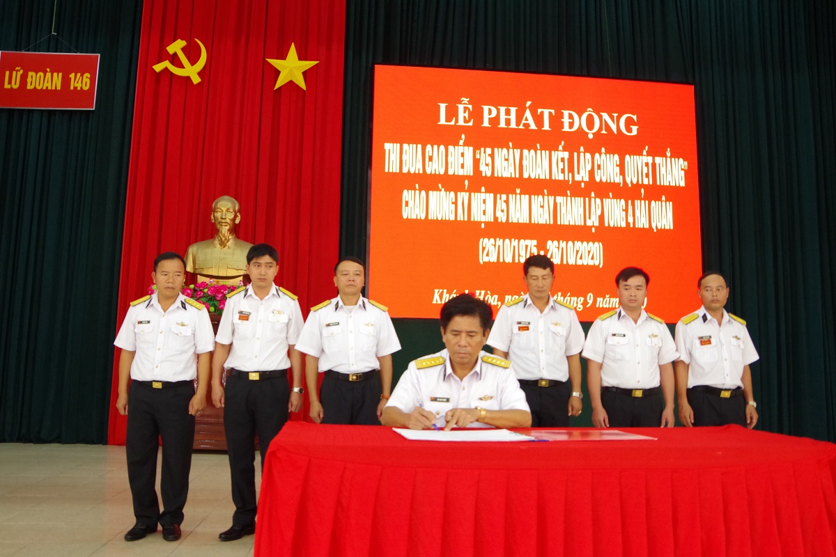 Sáng 16-9, tại TP. Cam Ranh, tỉnh Khánh Hòa, Lữ đoàn 146, Vùng 4 Hải quân tổ chức phát động thi đua cao điểm với chủ đề “45 ngày đoàn kết, lập công, quyết thắng” kỷ niệm 45 năm Ngày thành lập Vùng (26-10-1975 - 26-10-2020).