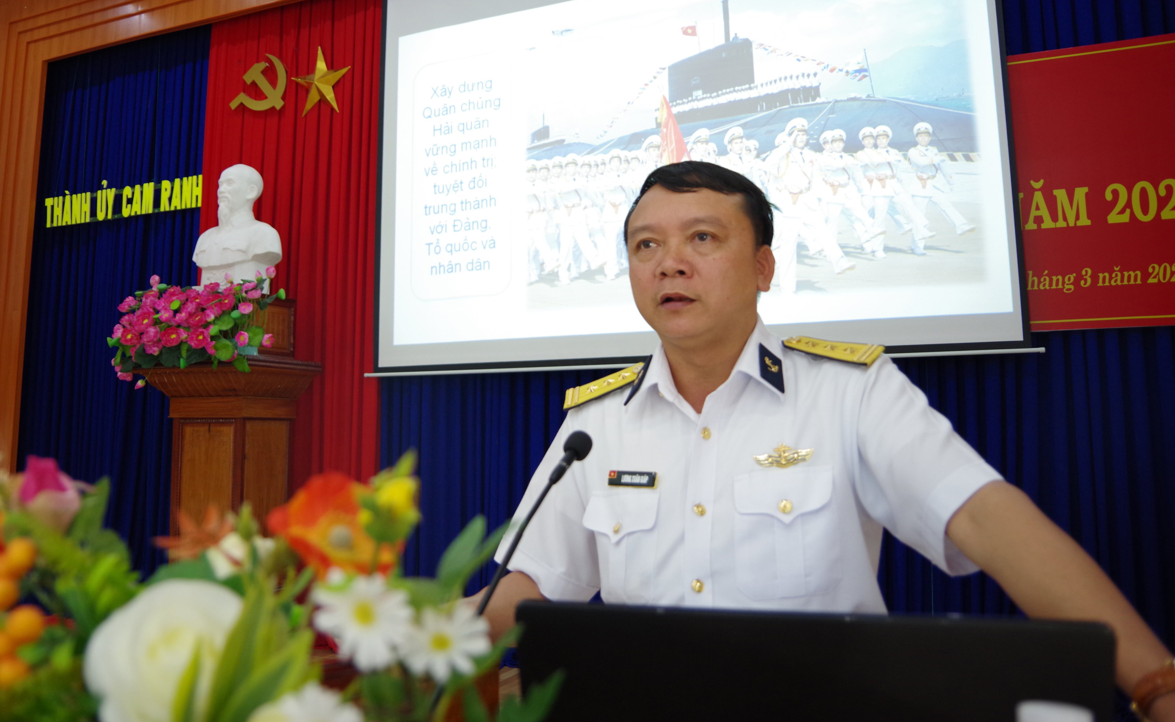 Sáng 21/3, Lữ đoàn 146, Vùng 4 Hải quân tổ chức thông tin về biển, đảo cho 210 đồng chí là cán bộ chủ chốt của TP. Cam Ranh, tỉnh Khánh Hòa.