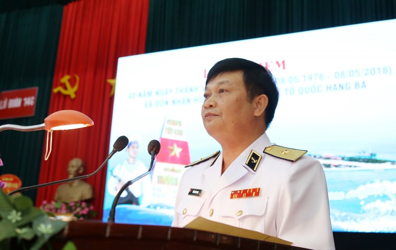 Thiếu tướng Trần Hoài Trung, Bí thư Đảng ủy, Chính ủy Hải quân phát biểu tại buổi lễ