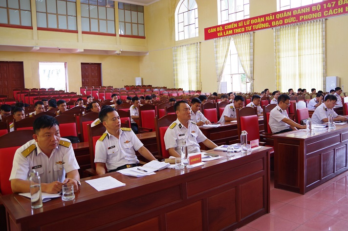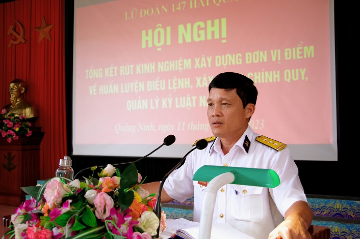 Sáng 11/10, tại Quảng Ninh, Lữ đoàn 147, Vùng 1 Hải quân tổ chức Hội nghị tổng kết rút kinh nghiệm xây dựng đơn vị điểm về huấn luyện điều lệnh, xây dựng chính quy, quản lý kỷ luật năm 2023. Thượng tá Hoàng Minh Sơn, Phó Lữ đoàn trưởng, Tham mưu trưởng Lữ đoàn chủ trì.