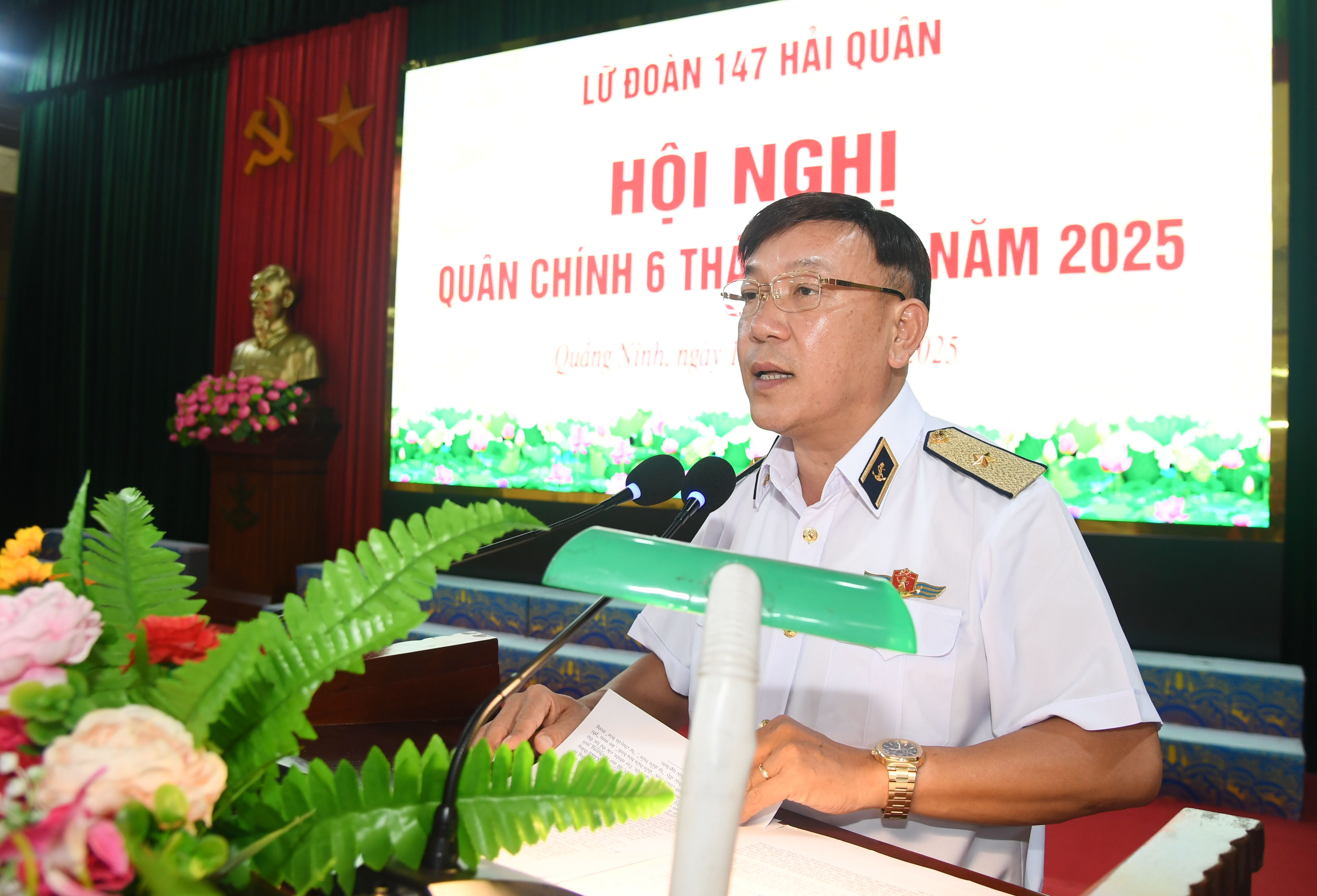 Phát biểu chỉ đạo, Chuẩn Đô đốc Trần Xuân Văn biểu dương và đánh giá cao kết quả thực hiện nhiệm vụ của toàn thể cán bộ, chiến sĩ Lữ đoàn 147 trong 6 tháng đầu năm 2025.