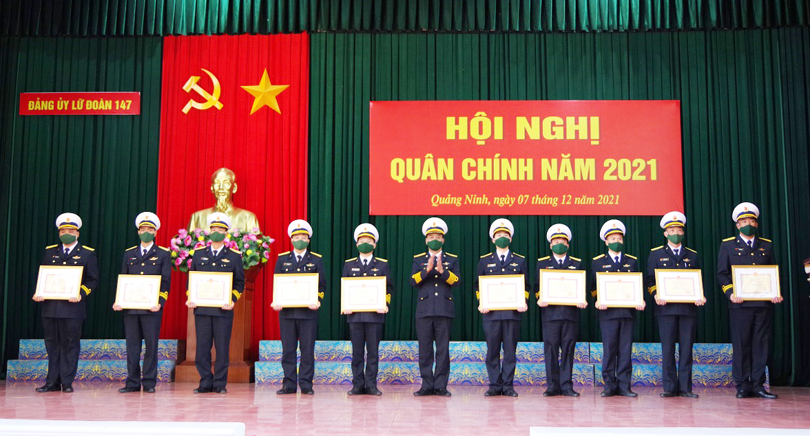 Sáng 7/12, tại Quảng Ninh, Lữ đoàn 147, Vùng 1 Hải quân tổ chức Hội nghị Quân chính năm 2021. Đại tá Hồ Thanh Hoàn, Bí thư Đảng ủy, Chính ủy Vùng 1 dự và chỉ đạo.