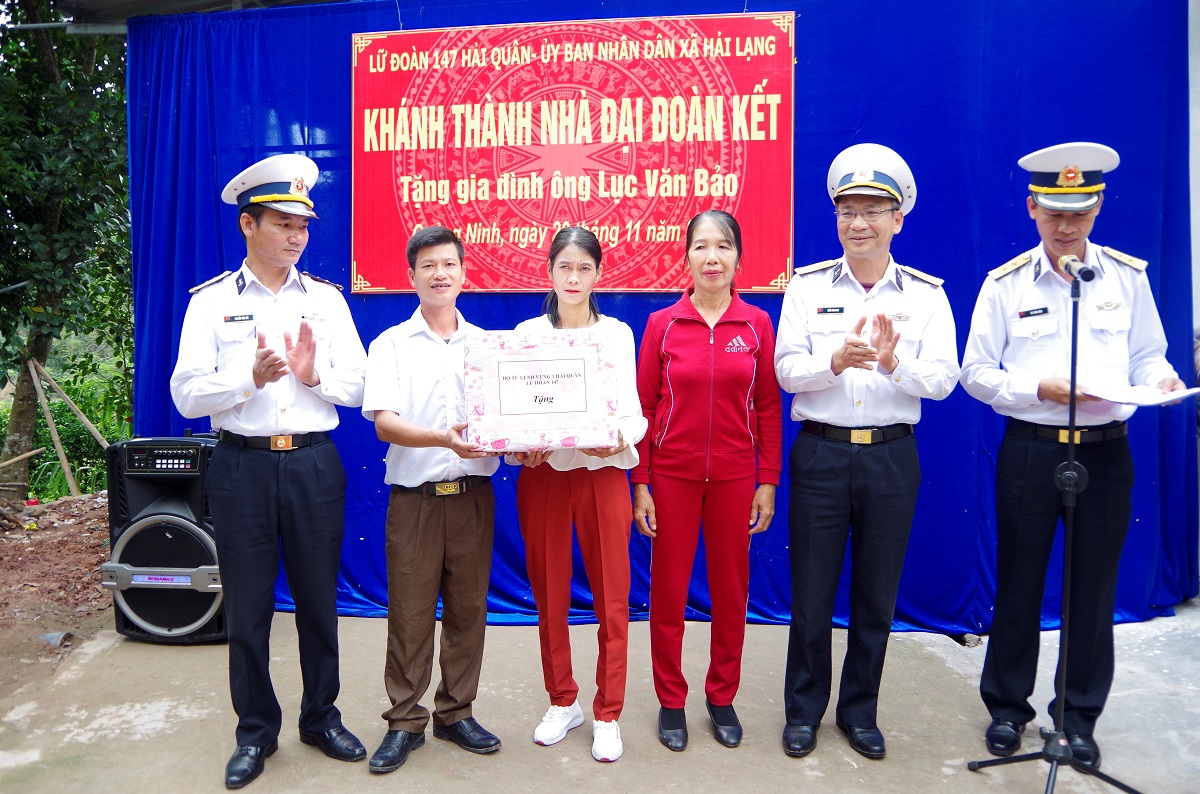Sáng 20-11, tại xã Hải Lạng, huyện Tiên Yên, tỉnh Quảng Ninh, Lữ đoàn 147, Vùng 1 Hải quân phối hợp với chính quyền địa phương tổ chức khánh thành và bàn giao “Nhà Đại đoàn kết” tặng gia đình ông Lục Văn Bảo.