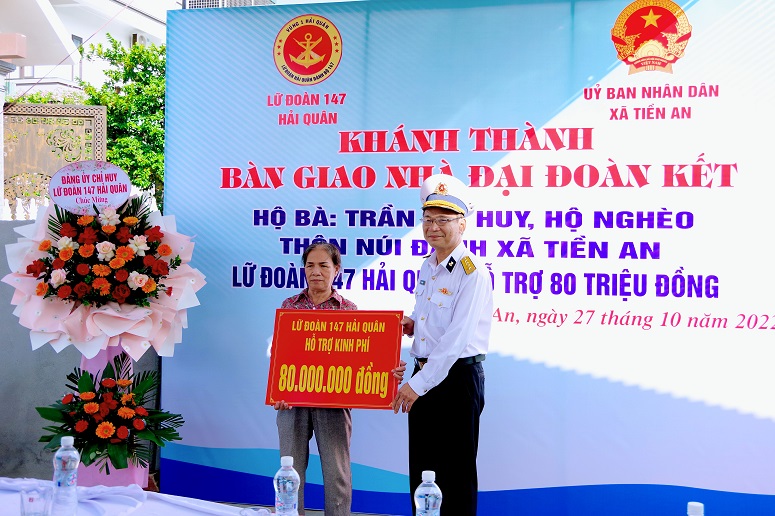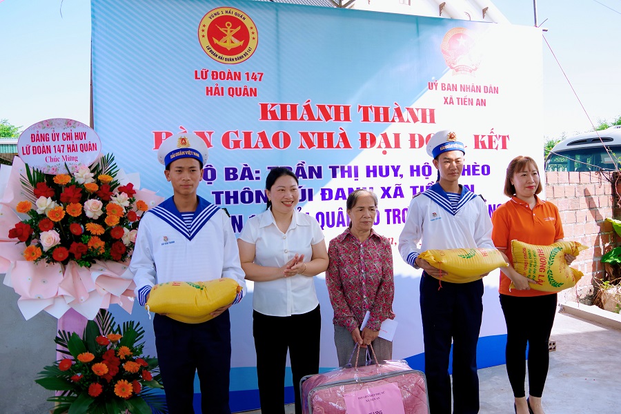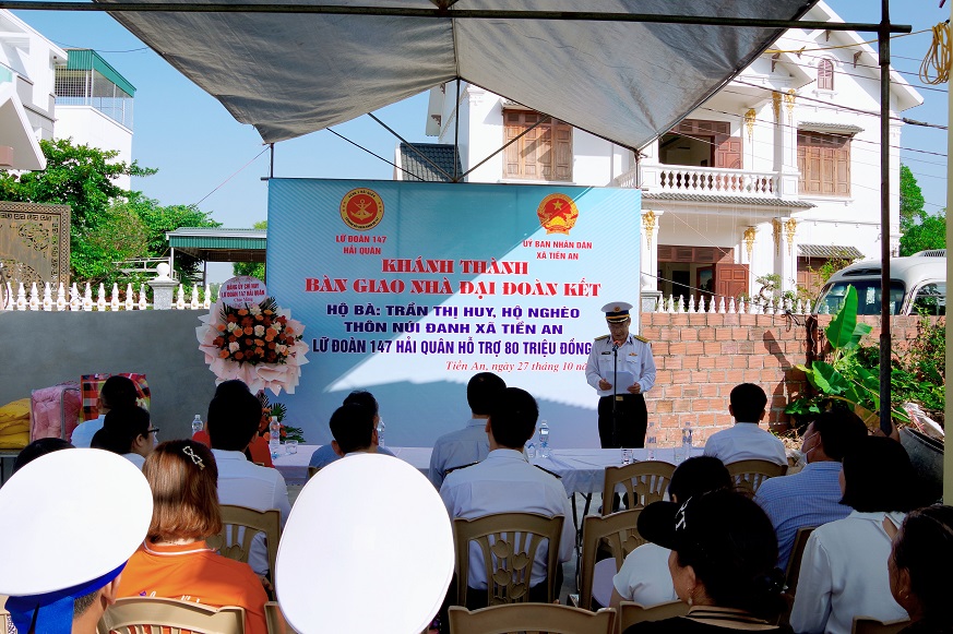 Sáng 27/10, tại xã Tiền An, thị xã Quảng Yên, tỉnh Quảng Ninh, Lữ đoàn 147, Vùng 1 Hải quân phối hợp với chính quyền địa phương tổ chức khánh thành và bàn giao nhà đại đoàn kết tặng gia đình bà Trần Thị Huy.
