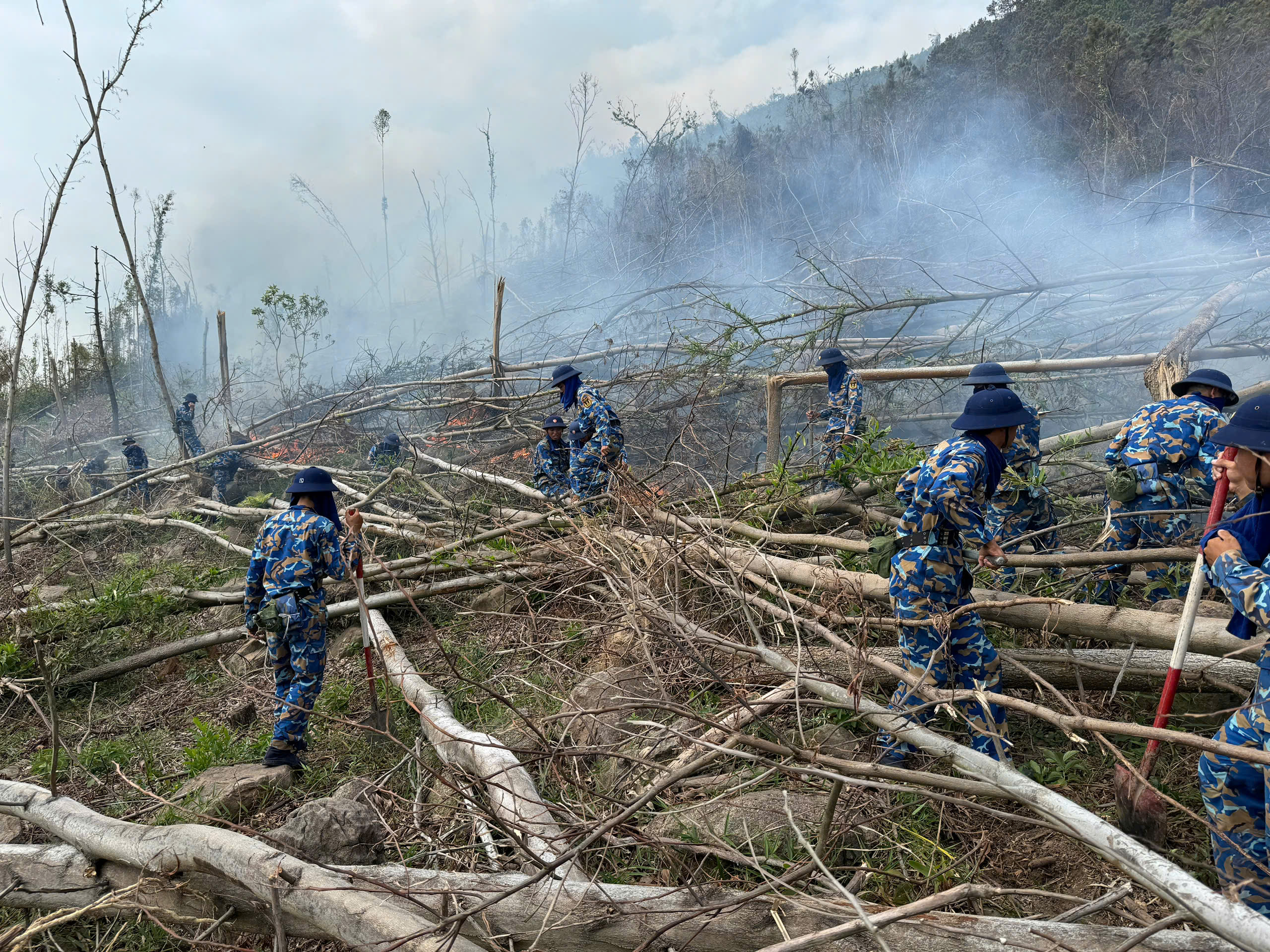 Do ảnh hưởng của cơn bão số 3 (Yagi) các khu rừng cây tại Quảng Ninh bị gãy đổ nhiều, thời tiết hanh khô khiến các thảm thực bì dễ bắt lửa và lan nhanh.