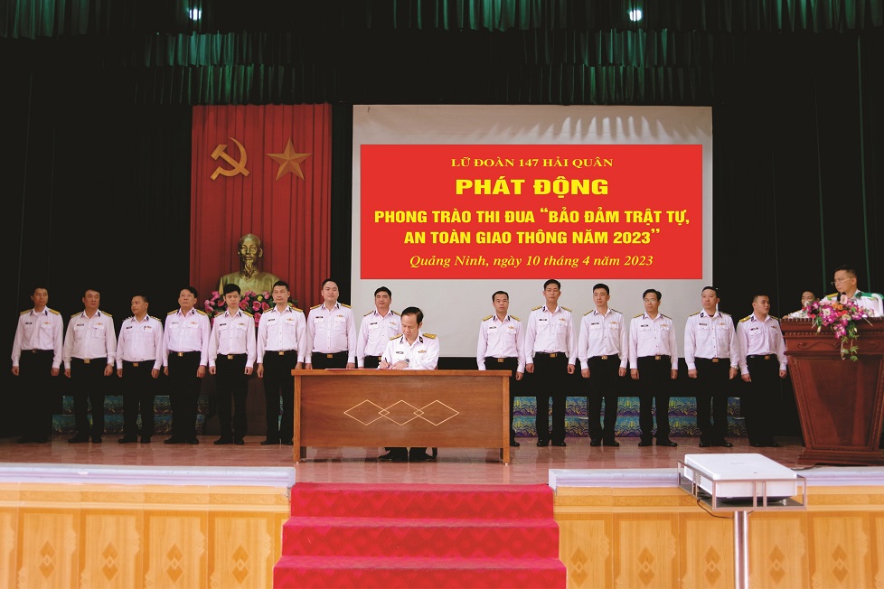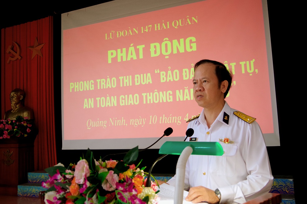 Sáng 10/4, tại Quảng Ninh, Lữ đoàn 147, Vùng 1 Hải quân phát động phong trào thi đua bảo đảm trật tự, an toàn giao thông (ATGT) năm 2023 với chủ đề “Thượng tôn pháp luật để xây dựng văn hóa giao thông an toàn”. Đại tá Vũ Tiến Dũng, Bí thư Đảng ủy, Chính ủy Lữ đoàn chủ trì.