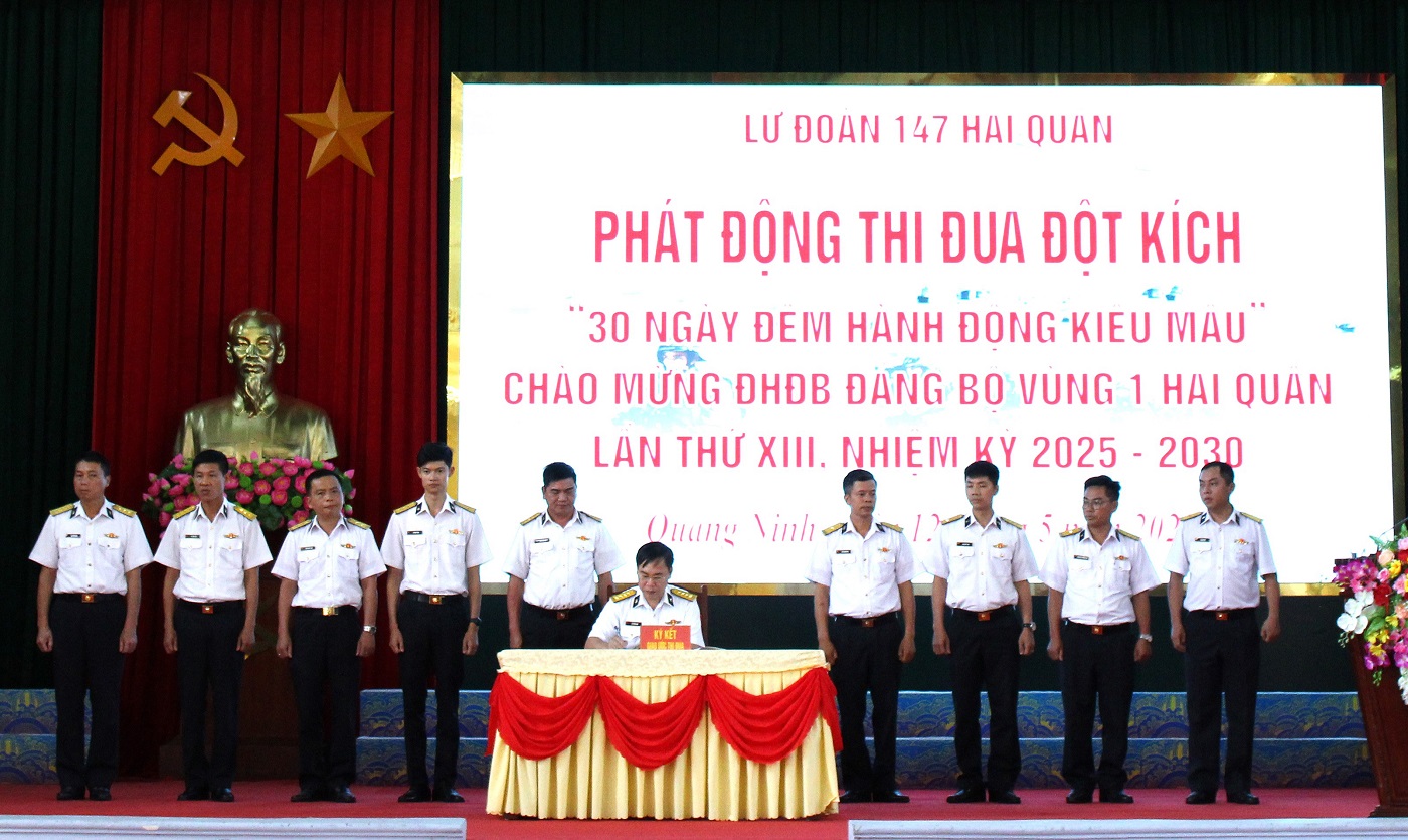 Ngày 12/5, tại thị xã Quảng Yên, tỉnh Quảng Ninh, Lữ đoàn 147, Vùng 1 Hải quân tổ chức phát động thi đua đột kích với chủ đề “30 ngày đêm hành động kiểu mẫu” chào mừng Đại hội đại biểu Đảng bộ Vùng 1 Hải quân lần thứ XIII, nhiệm kỳ 2025-2030.