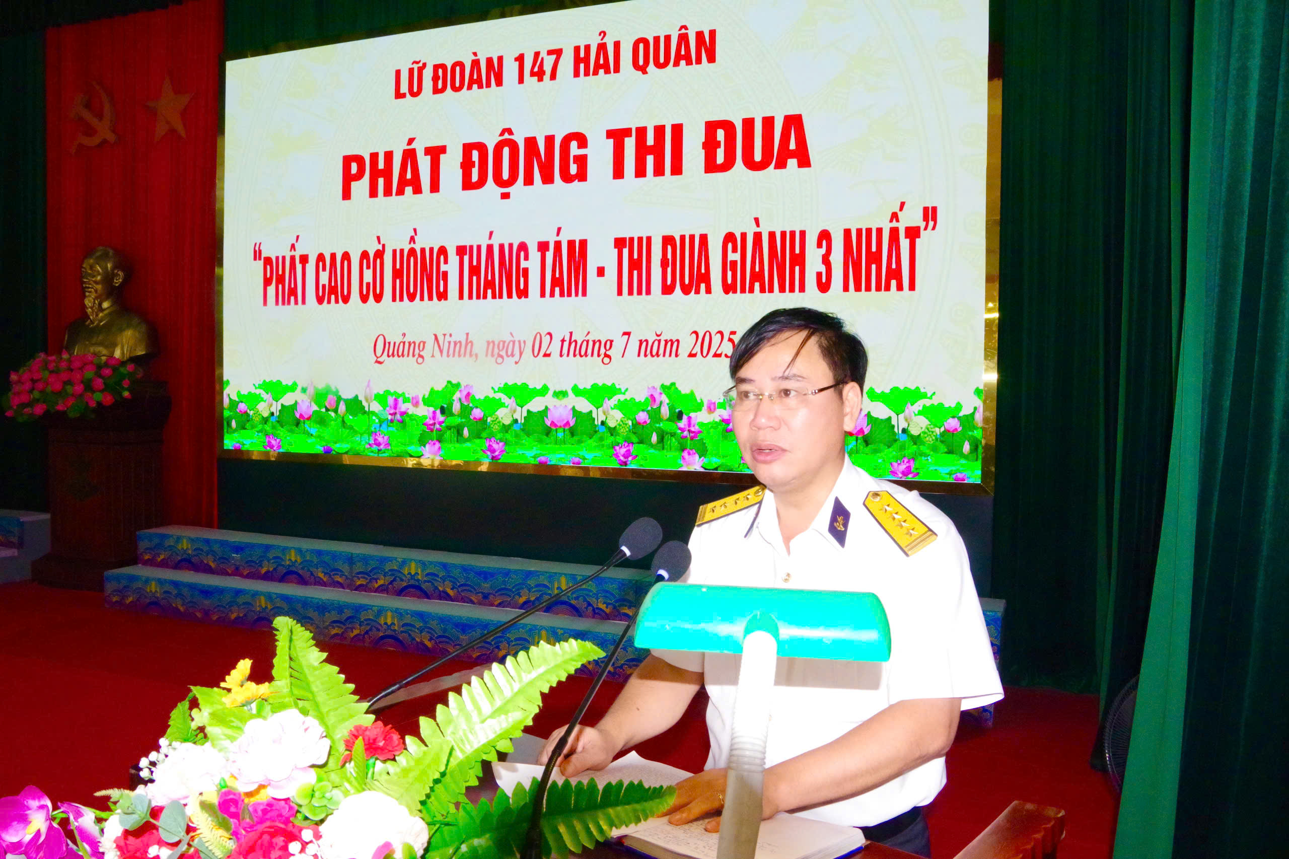 Chiều 2/7, tại Quảng Ninh, Lữ đoàn 147, Vùng 1 Hải quân tổ chức phát động đợt thi đua cao điểm chào mừng kỷ niệm 80 năm Cách mạng tháng Tám thành công (19/8/1945 - 19/8/2025) và Quốc khánh nước Cộng hòa xã hội chủ nghĩa Việt Nam (2/9/1945 - 2/9/2025); chào mừng Đại hội đại biểu Đảng bộ Quân chủng lần thứ XIV, Đại hội đại biểu Đảng bộ Quân đội lần thứ XII, Đại hội thi đua quyết thắng toàn quân lần thứ XI. Đại tá Lê Tuấn Anh, Bí thư Đảng ủy, Chính ủy Lữ đoàn dự và chỉ đạo.