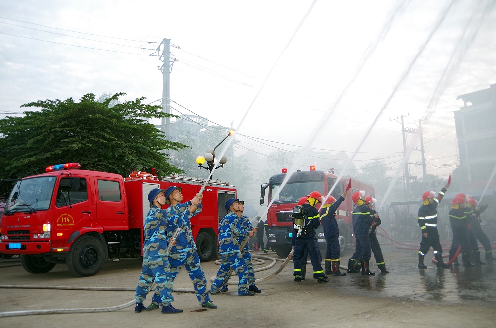 Chiều 11-1, bộ phận chữa cháy của Lữ đoàn Hải quân đánh bộ 147, Vùng 1 Hải quân (gồm 1 xe cứu hỏa đặc chủng và 8 cán bộ, chiến sĩ được huấn luyện PCCC cơ bản) đã cùng các lực lượng chức năng của thị xã Quảng Yên tham gia diễn tập phương án chữa cháy tại Chợ Rừng, phường Quảng Yên, thị xã Quảng Yên, tỉnh Quảng Ninh.