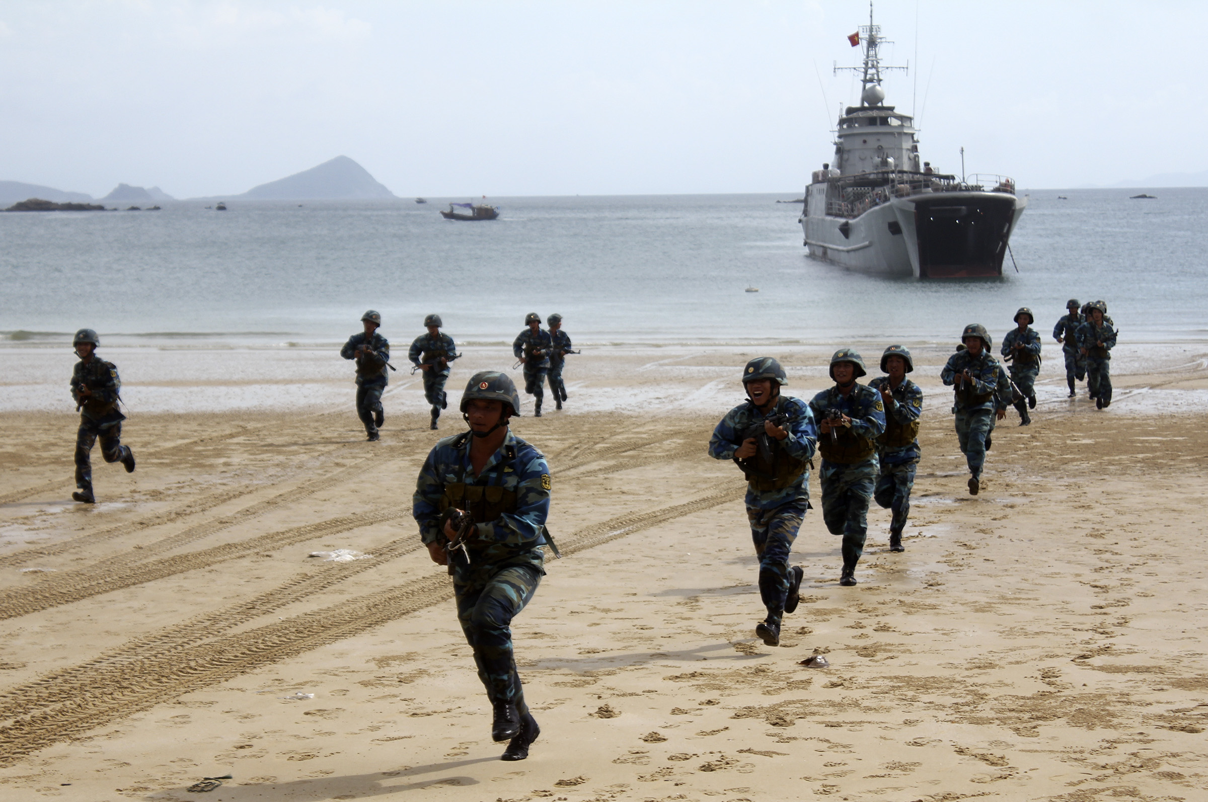 Lữ đoàn 147 và Lữ đoàn 125 huấn luyện hiệp đồng đổ bộ chi viện đảo. Ảnh: Vũ Tiến