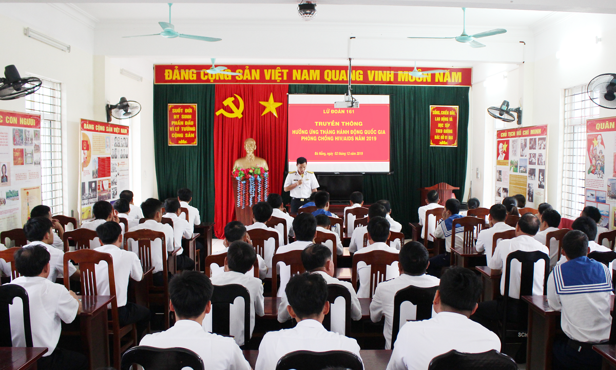 Hưởng ứng Tháng hành động Quốc gia phòng chống HIV/AIDS năm 2019, chiều 2-12, tại Đà Nẵng, Lữ đoàn 161, Vùng 3 Hải quân tổ chức truyền thông phòng chống HIV/AIDS cho 250 cán bộ, chiến sĩ.