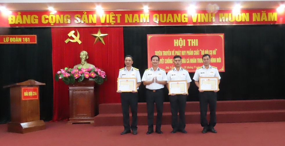 Chiều 18/9, tại thành phố Đà Nẵng, Lữ đoàn 161, Vùng 3 Hải quân đã tổ chức Hội thi Tuyên truyền về phát huy phẩm chất “Bộ đội Cụ Hồ” thời kỳ mới. Đại tá Lưu Thanh Chương, Phó Chủ nhiệm Chính trị Vùng 3 dự và chỉ đạo.