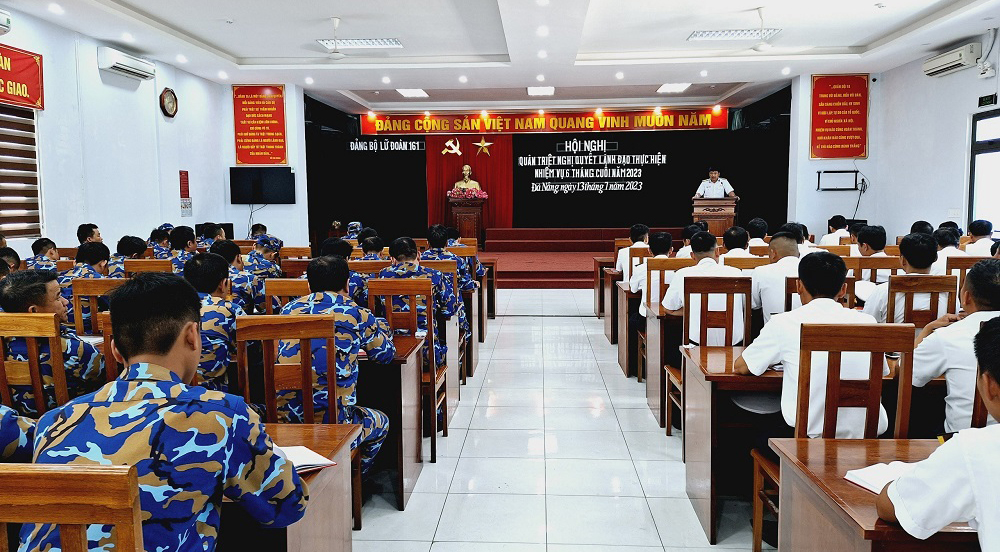Chiều 13/7, tại TP. Đà Nẵng, Đảng bộ Lữ đoàn 161, Vùng 3 Hải quân tổ chức Hội nghị quán triệt nghị quyết lãnh đạo thực hiện nhiệm vụ 6 tháng cuối năm 2023. Đại tá Nguyễn Quang Vinh, Bí thư Đảng uỷ, Chính uỷ Lữ đoàn chủ trì.