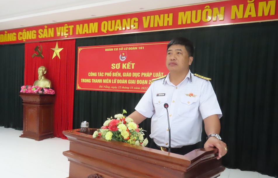 Sáng 22/11, tại Đà Nẵng, Đoàn cơ sở Lữ đoàn 161, Vùng 3 Hải quân tổ chức sơ kết xây dựng đơn vị điểm về công tác phổ biến, giáo dục pháp luật cho thanh niên giai đoạn 2021-2025. Đại tá Vũ Thái Hà, Phó Chủ nhiệm Chính trị Vùng tới dự.