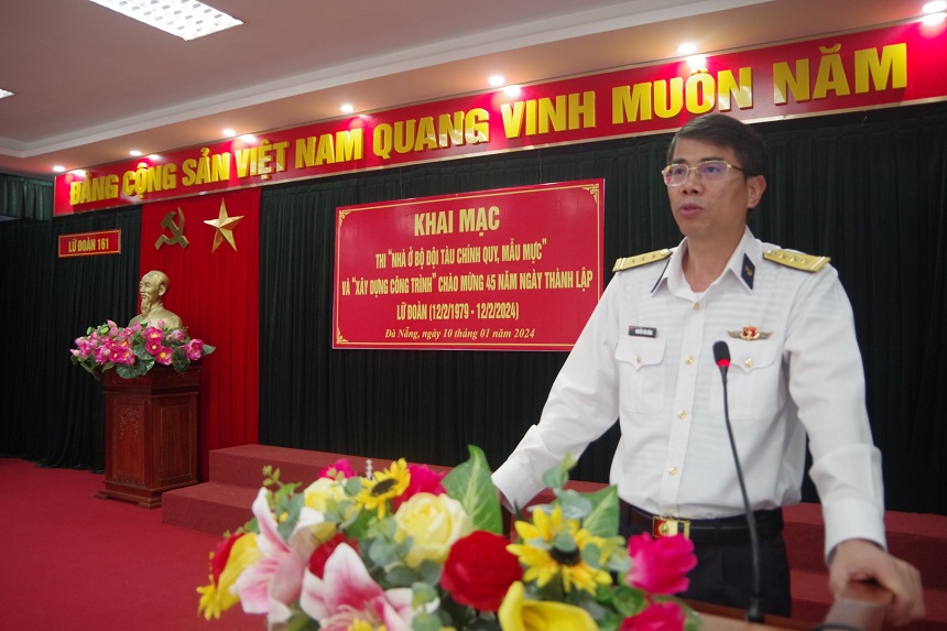Sáng 10/1, tại Đà Nẵng, Lữ đoàn 161, Vùng 3 Hải quân tổ chức khai mạc thi “Nhà ở bộ đội tàu chính quy, mẫu mực” và “Xây dựng công trình” chào mừng kỷ niệm 45 năm Ngày thành lập Lữ đoàn (12/2/1979 - 12/2/2024).