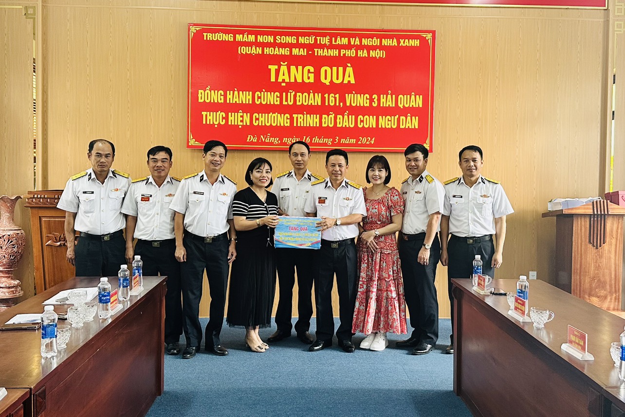 Cũng trong dịp này, Trường mầm non Ngôi nhà xanh và song ngữ Tuệ Lâm (Hoàng Mai, Hà Nội) cũng đã tặng quà để đồng hành với Lữ đoàn 161 thực hiện chương trình đỡ đầu con ngư dân trong thời gian tới.