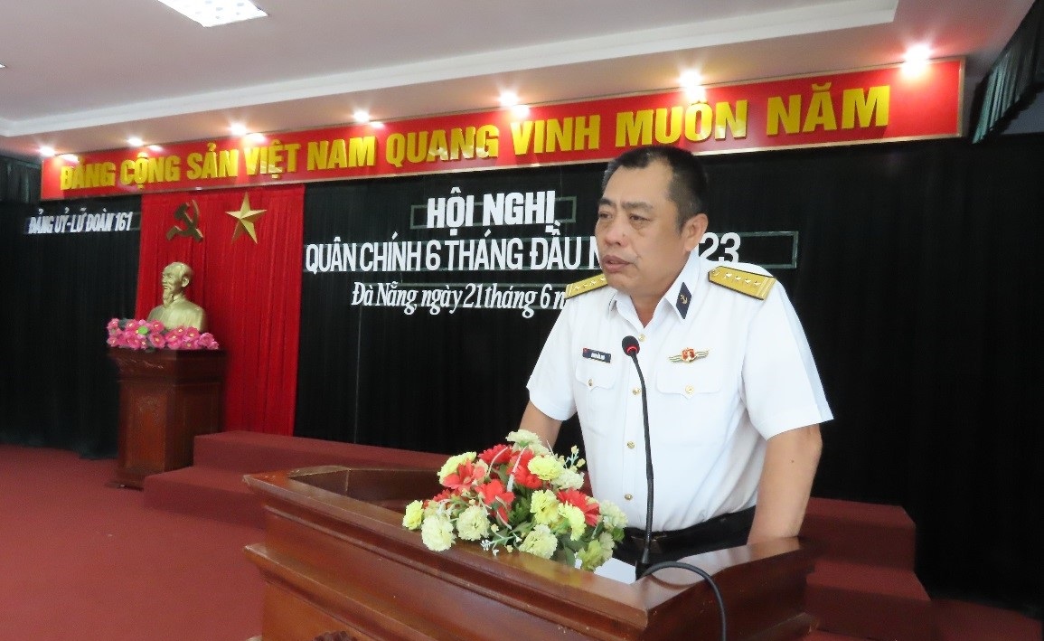 Sáng 21/6, tại Đà Nẵng, Lữ đoàn 161, Vùng 3 Hải quân tổ chức Hội nghị quân chính 6 tháng đầu năm 2023. Tới dự và chỉ đạo có Đại tá Đoàn Bảo Anh, Phó Tư lệnh Vùng. Thượng tá Nguyễn Văn Tư, Lữ đoàn trưởng chủ trì; Đại tá Nguyễn Quang Vinh, Bí thư Đảng ủy, Chính ủy Lữ đoàn quán triệt nghị quyết lãnh đạo thực hiện nhiệm vụ 6 tháng cuối năm 2023 của Đảng ủy Lữ đoàn.