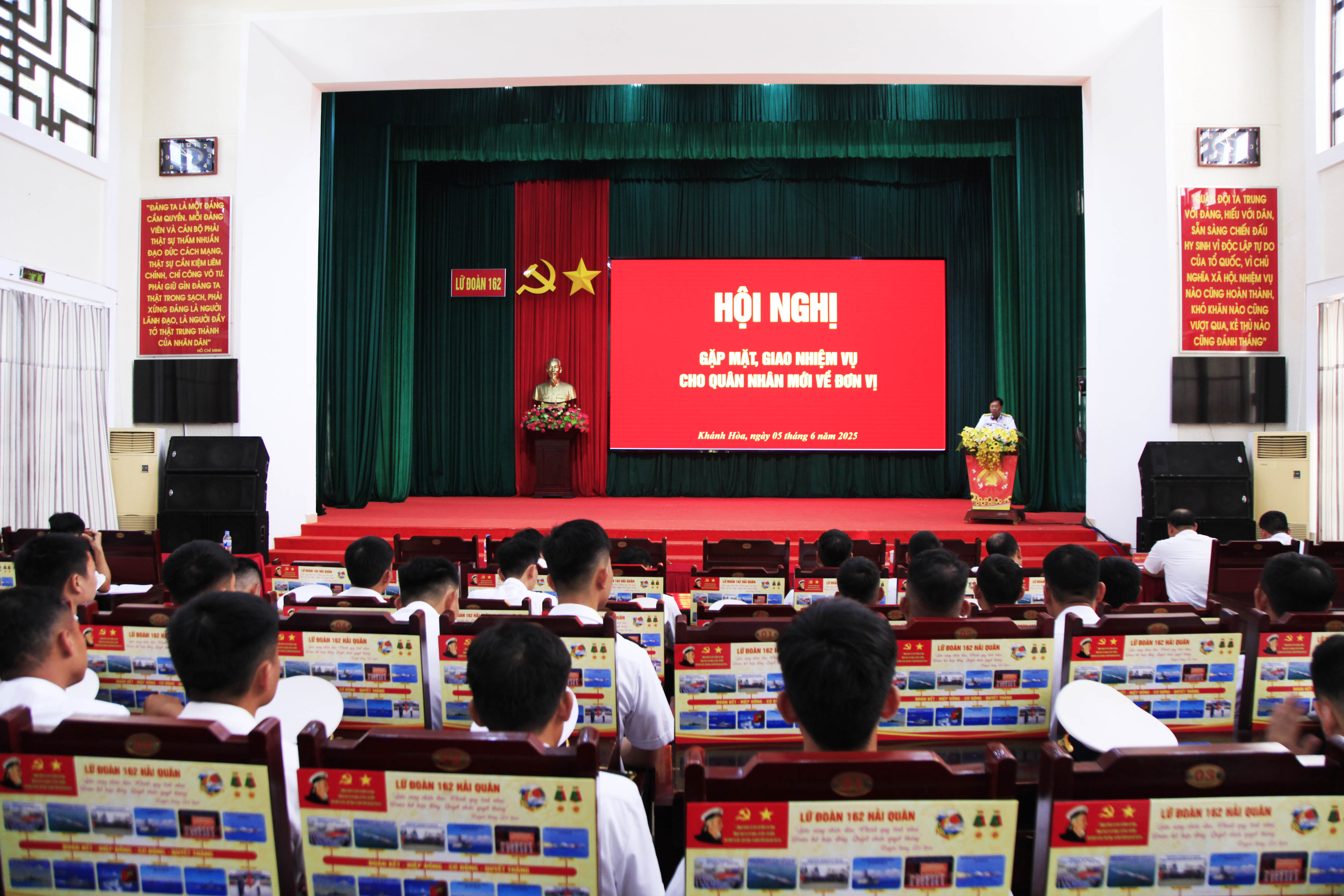 Sáng 5/6, tại thành phố Cam Ranh, tỉnh Khánh Hoà, Lữ đoàn 162, Vùng 4 Hải quân tổ chức gặp mặt động viên, nắm tâm tư, nguyện vọng và giao nhiệm vụ cho sĩ quan, quân nhân chuyên nghiệp mới về đơn vị nhận công tác. Thượng tá Mai Văn Doanh, Bí thư Đảng ủy, Chính ủy Lữ đoàn dự, chủ trì.