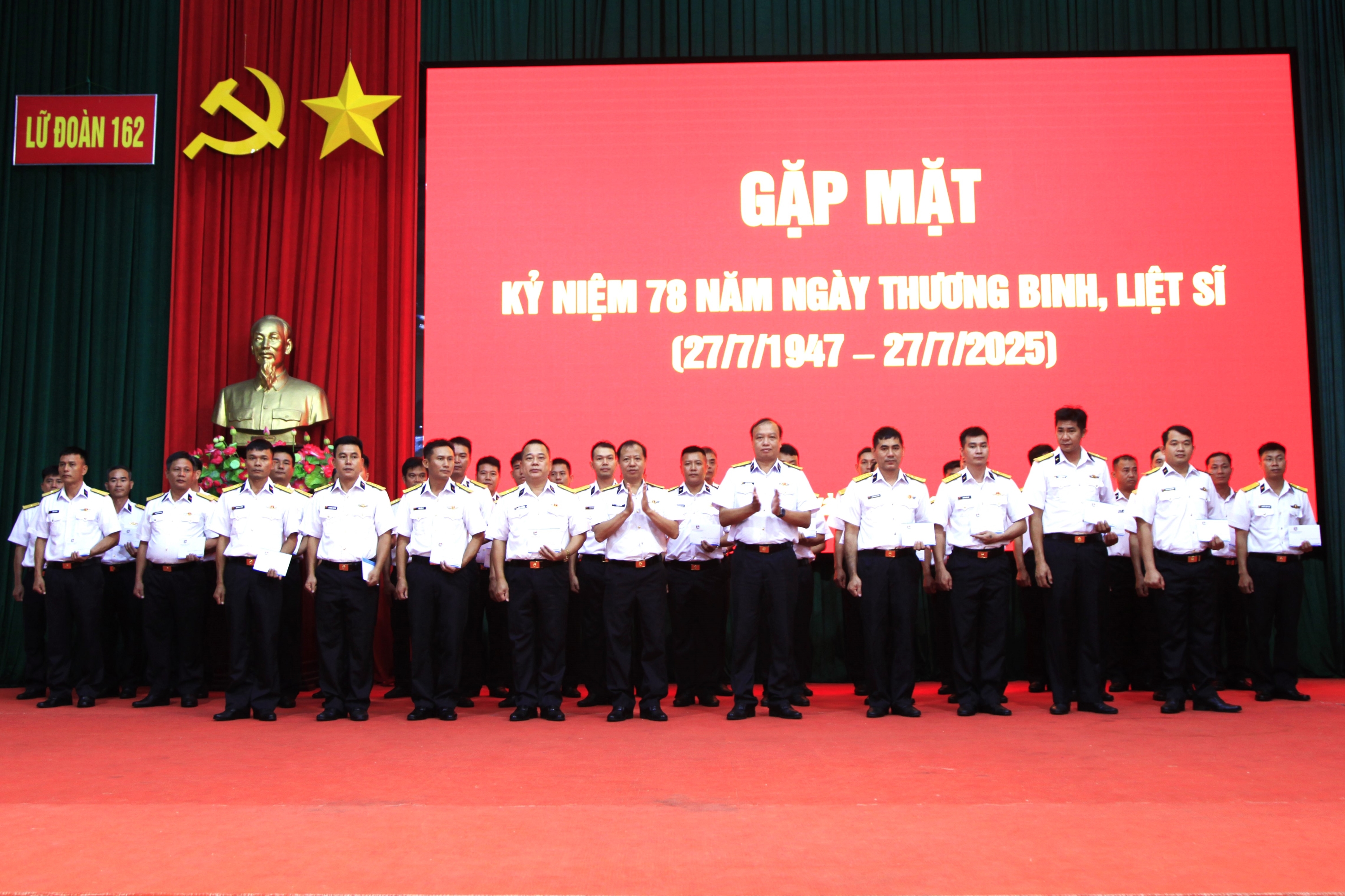 Tại buổi gặp mặt, Đảng ủy, chỉ huy Lữ đoàn 162 đã ân cần thăm hỏi, động viên, tặng quà cho 60 cán bộ, chiến sĩ đang công tác tại đơn vị là thương binh; con liệt sĩ, thương binh, bệnh binh, anh hùng lực lượng vũ trang nhân dân; bày tỏ lòng tri ân sâu sắc với những đóng góp to lớn của các thế hệ đi trước trong sự nghiệp đấu tranh giải phóng dân tộc, xây dựng và bảo vệ Tổ quốc. Đồng thời mong muốn các quân nhân tiếp tục phát huy truyền thống cách mạng của gia đình, ra sức cống hiến xây dựng đơn vị, góp phần bảo vệ vững chắc chủ quyền biển đảo của Tổ quốc thời kỳ mới.