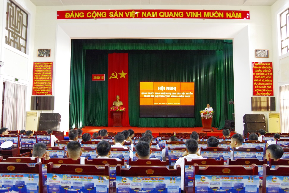 Sáng 7/11, tại TP. Cam Ranh, tỉnh Khánh Hoà, Lữ đoàn 162, Vùng 4 Hải quân tổ chức Hội nghị quán triệt, giao nhiệm vụ cho các đội tuyển tham gia Hội thao TDTT Vùng 4 năm 2023. Trung tá Trần Văn Vương, Phó Lữ đoàn trưởng, Tham mưu trưởng chủ trì.
