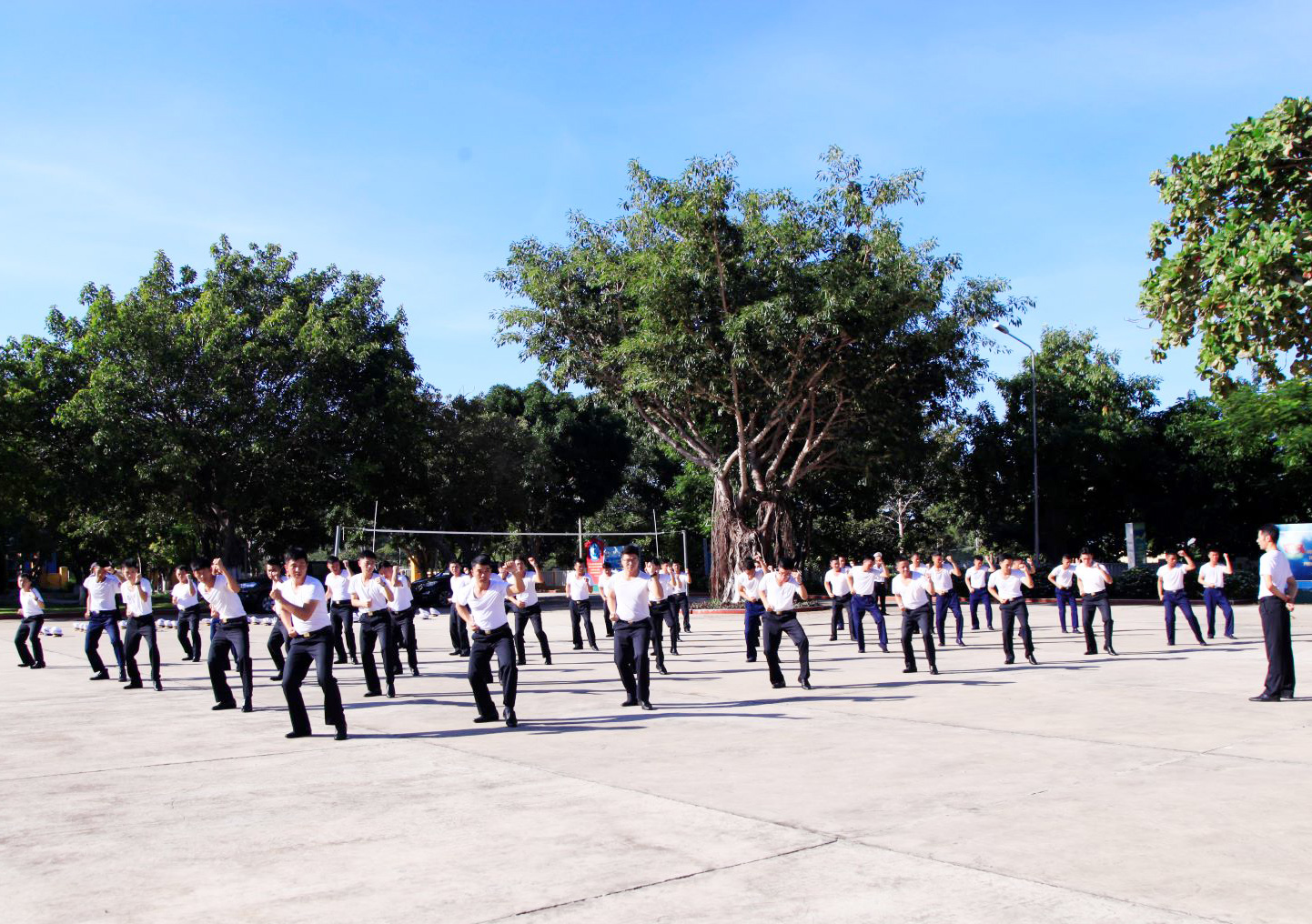 Đoàn đã kiểm tra các nội dung: Thực hành duy trì một buổi chào cờ, thông báo thời sự tuần, kiểm tra lễ tiết tác phong quân nhân, đồng diễn 4 bài thể dục buổi sáng, 16 động tác võ và 35 thế liên quyền khối cơ quan; văn kiện sổ sách, chính quy nhà ở, phòng làm việc.