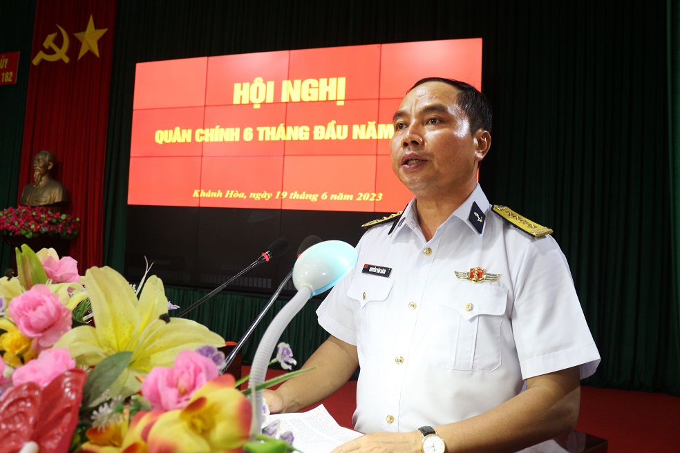 Chiều 19/6, tại TP. Cam Ranh, tỉnh Khánh Hòa, Lữ đoàn 162, Vùng 4 Hải quân tổ chức Hội nghị Quân chính 6 tháng đầu năm 2023. Đại tá Nguyễn Văn Bách, Tư lệnh Vùng dự và chỉ đạo. Thượng tá Nguyễn Văn Đồng, Lữ đoàn trưởng chủ trì. Thượng tá Mai Văn Doanh, Bí thư Đảng ủy, Chính ủy Lữ đoàn quán triệt nghị quyết lãnh đạo thực hiện nhiệm vụ 6 tháng cuối năm.