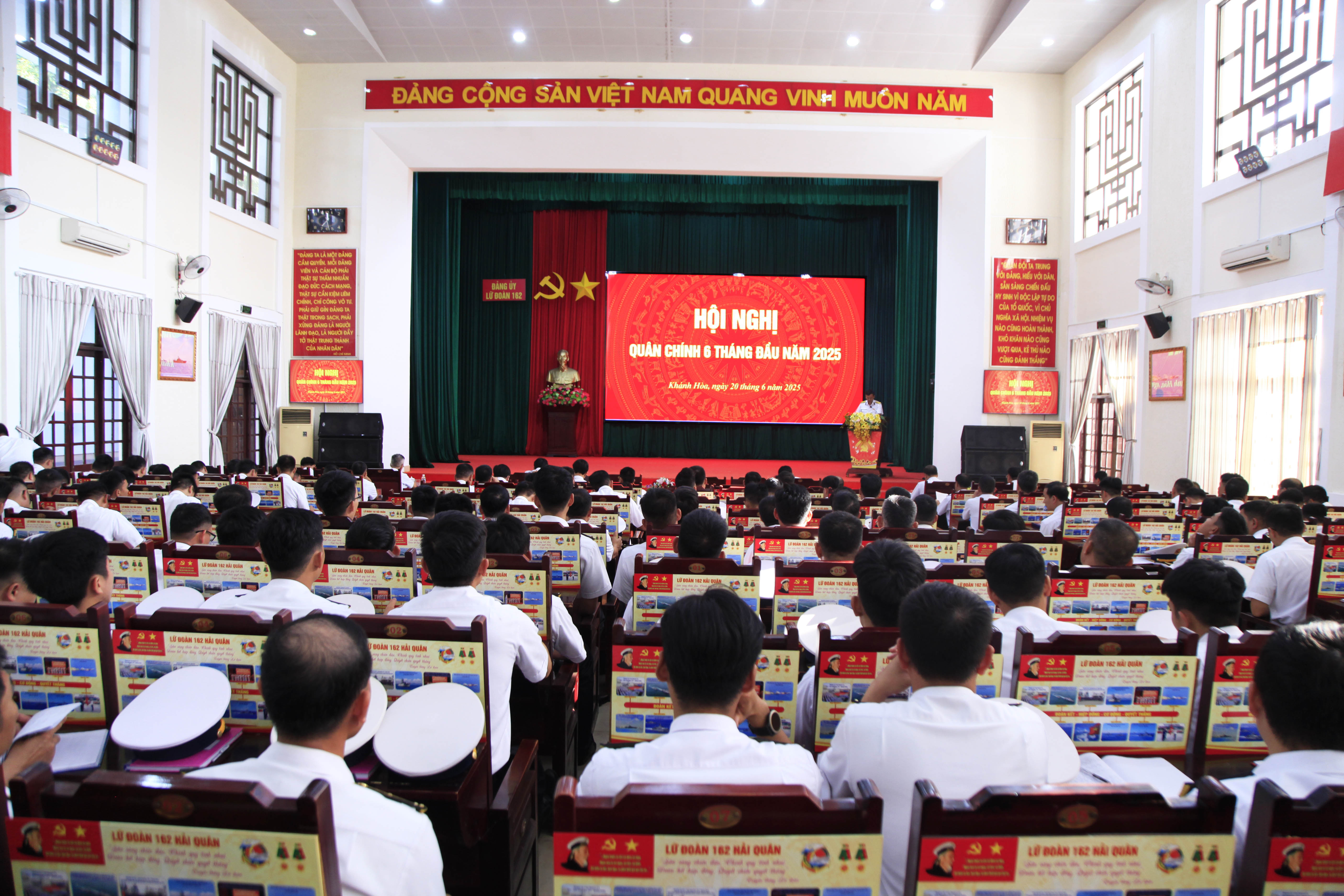 Sáng 20/6, tại thành phố Cam Ranh, tỉnh Khánh Hòa, Lữ đoàn 162, Vùng 4 Hải quân tổ chức Hội nghị quân chính 6 tháng đầu năm 2025. Thượng tá Bùi Xuân Bình, Bí thư Đảng ủy, Chính ủy Vùng dự, chỉ đạo.
