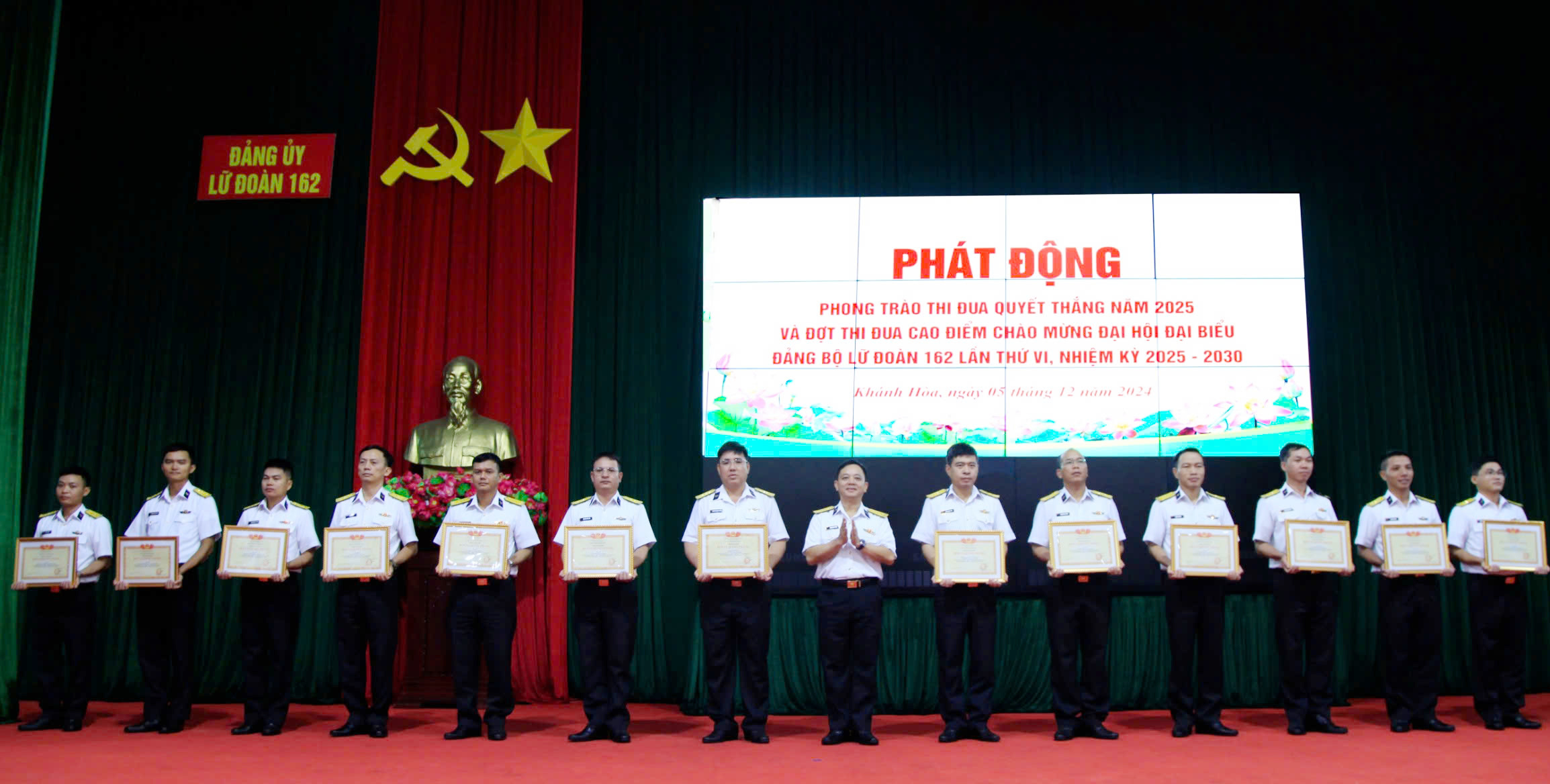 Năm 2024, Đảng ủy, chỉ huy Lữ đoàn 162 đã lãnh đạo, chỉ đạo các cơ quan, hải đội, tàu trực thuộc quán triệt, triển khai hoàn thành tốt các nhiệm vụ, có nhiều nhiệm vụ hoàn thành xuất sắc như: huấn luyện, SSCĐ, diễn tập, bắn đạn thật; tuần tra, bảo vệ chủ quyền biển đảo; tổ chức và tham gia hội thi, hội thao.
