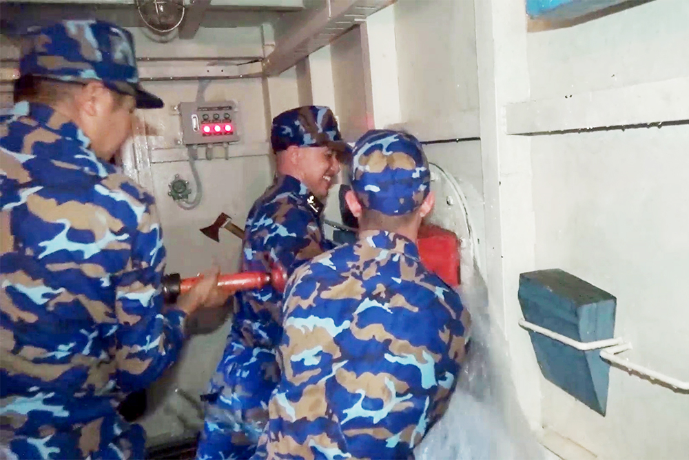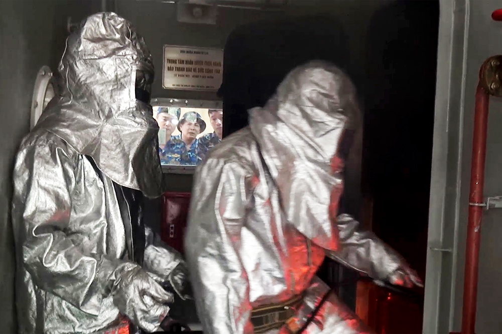 Thực hành xử trí tình huống tiếp cận dập tắt đám cháy trong khoang tàu