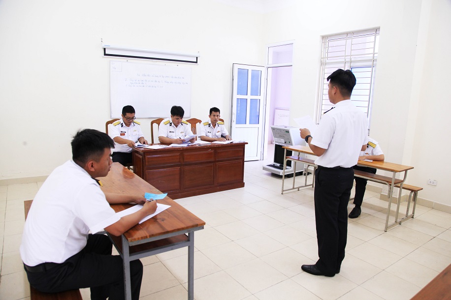 Các nội dung kiểm tra gồm: Nắm kiến thức trên các mặt công tác tham mưu, chính trị, hậu cần – kỹ thuật; điều lệnh, điều lệ, chỉ thị, hướng dẫn và tổ chức thực hiện theo nhiệm vụ, chức trách được giao trên các tàu mặt nước chiến đấu; kiểm tra kiến thức chuyên ngành theo hình thức vấn đáp và thực hành thao tác trang bị kỹ thuật ngành; tổ chức, phương pháp lên lớp một bài huấn luyện điều lệnh đội ngũ theo nội dung giáo án đã biên soạn…
