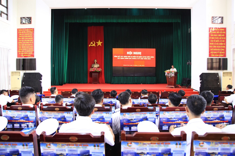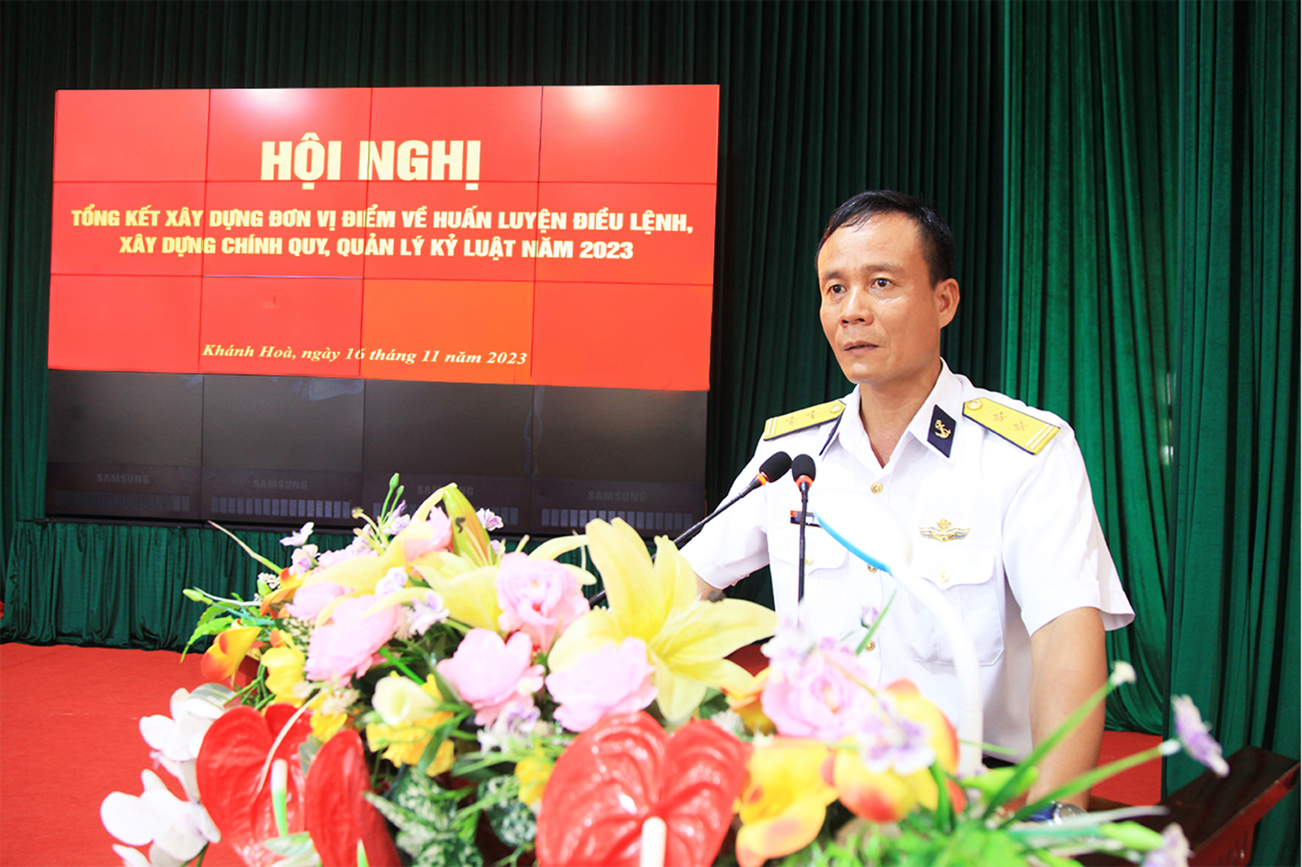 Chiều 16/11, tại TP.Cam Ranh, tỉnh Khánh Hoà, Lữ đoàn 162, Vùng 4 Hải quân tổ chức Hội nghị tổng kết xây dựng đơn vị điểm về huấn luyện điều lệnh, xây dựng chính quy, quản lý kỷ luật năm 2023. Trung tá Phạm Anh Tuấn, Phó Lữ đoàn trưởng chủ trì.