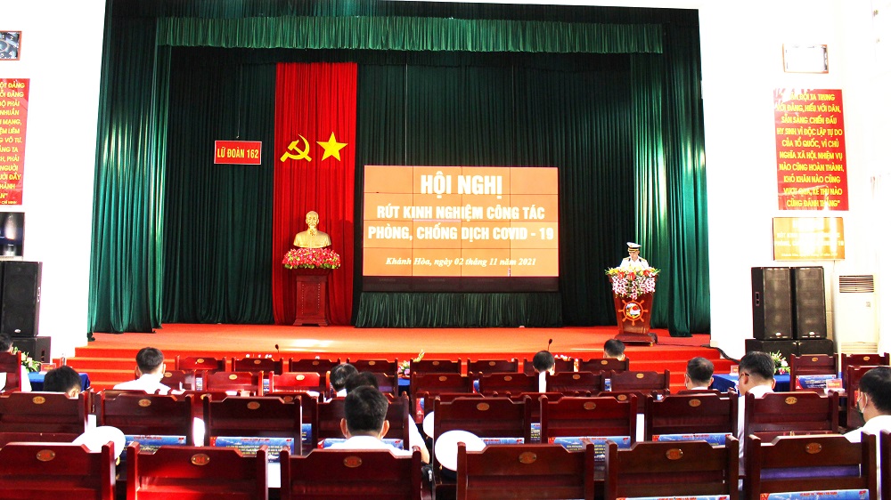 Sáng 2/11, tại TP. Cam Ranh, tỉnh Khánh Hòa, Lữ đoàn 162, Vùng 4 Hải quân tổ chức Hội nghị rút kinh nghiệm công tác phòng, chống dịch Covid-19 năm 2021. Thượng tá Vũ Đức Giang, Phó Lữ đoàn trưởng, Trưởng ban chỉ đạo phòng chống Covid-19 Lữ đoàn chủ trì.