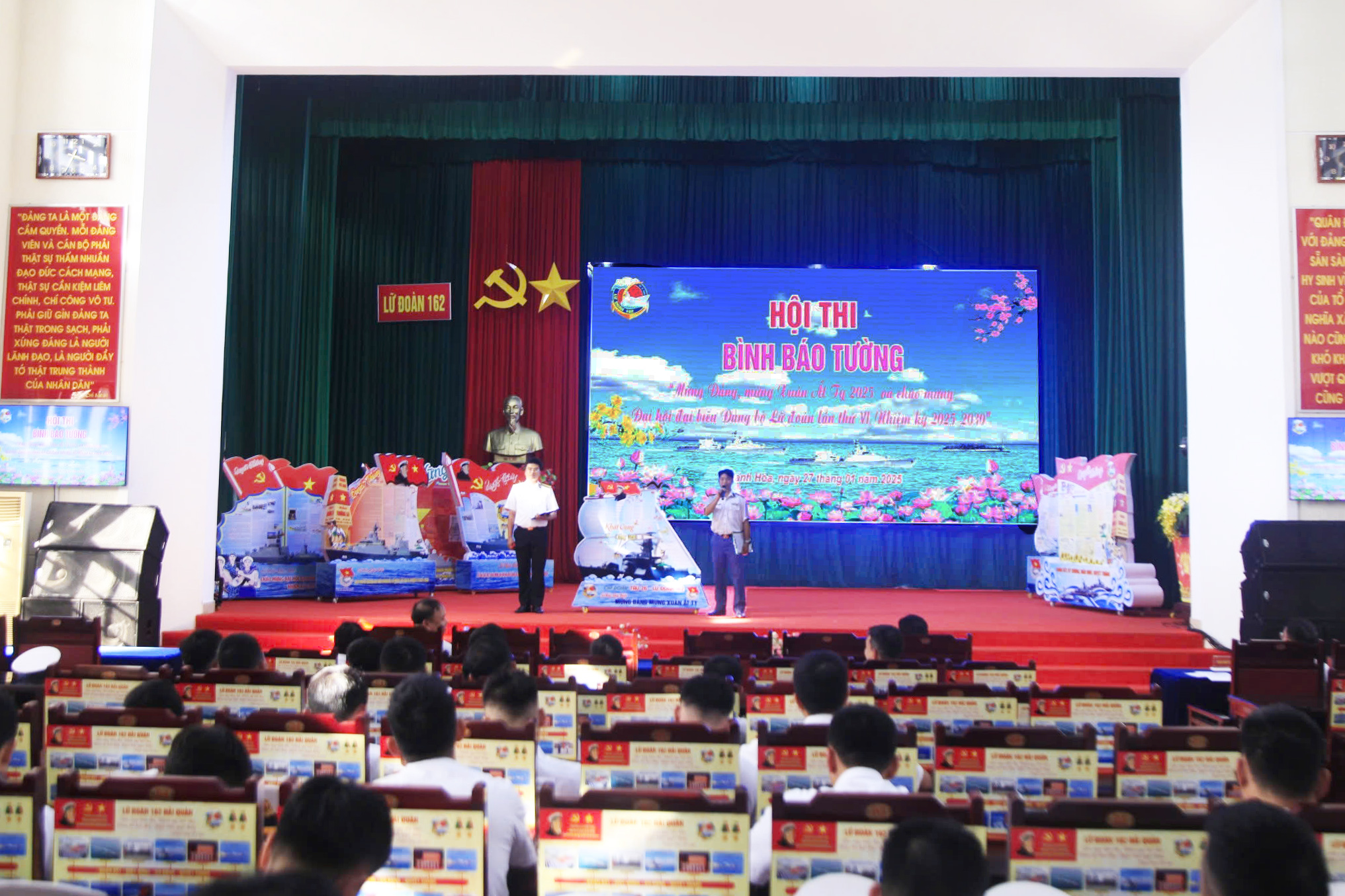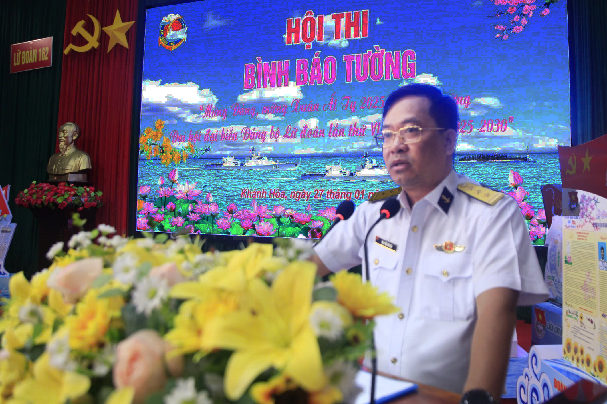 Ngày 27/1, tại thành phố Cam Ranh, tỉnh Khánh Hòa, Lữ đoàn 162, Vùng 4 Hải quân tổ chức thi phòng đón xuân, bình báo tường và câu đối tết chào Xuân Ất Tỵ 2025.