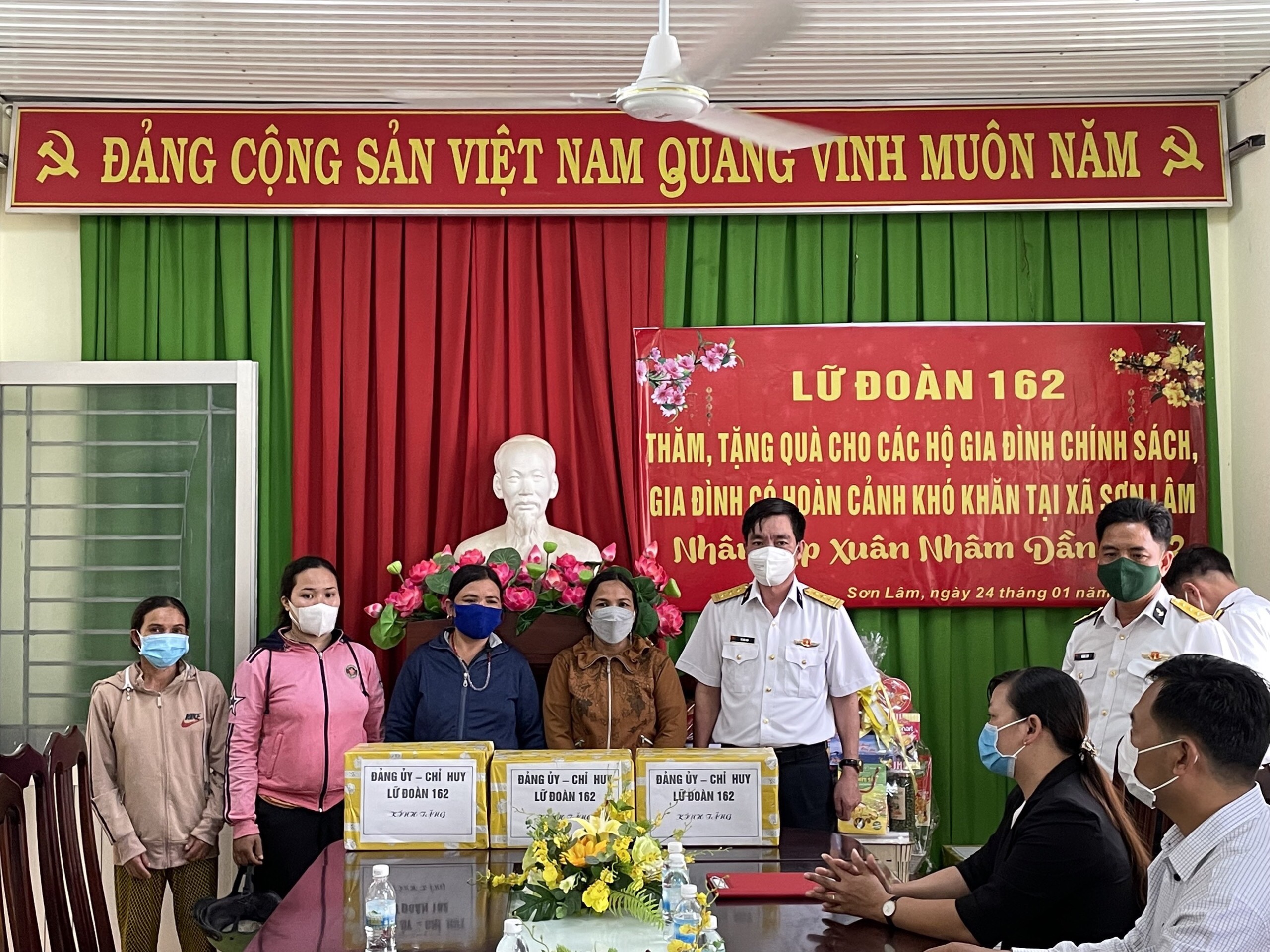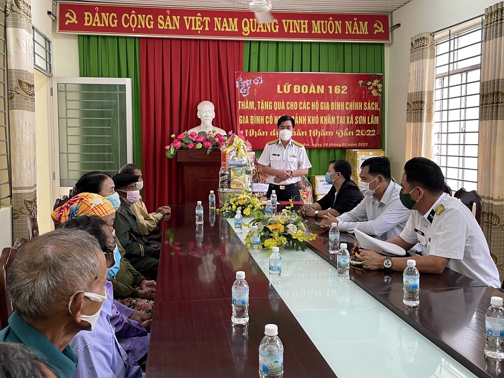 Chiều 24/1, Thượng tá Vũ Đức Hậu, Bí thư Đảng uỷ, Chính uỷ Lữ đoàn 162, Vùng 4 Hải quân và đoàn công tác đã đến thăm, chúc tết, tặng quà các gia đình chính sách, gia đình có hoàn cảnh khó khăn xã Sơn Lâm, huyện Khánh Sơn, tỉnh Khánh Hòa nhân dịp đón Xuân Nhâm Dần 2022.
